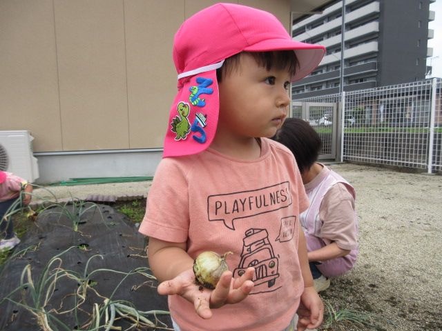 尻もちをつきながらも頑張りました。どんな玉ねぎが出てきても嬉し子ども達でした。(尻もちも上手にコロンとついてました(#^.^#))