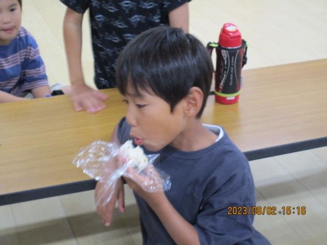 しゃけなどを準備していたのですが、1番人気は塩おむすび(*^-^*)「美味しかった~」「また、作って~」と大好評でした!