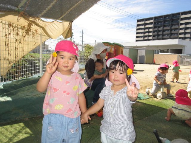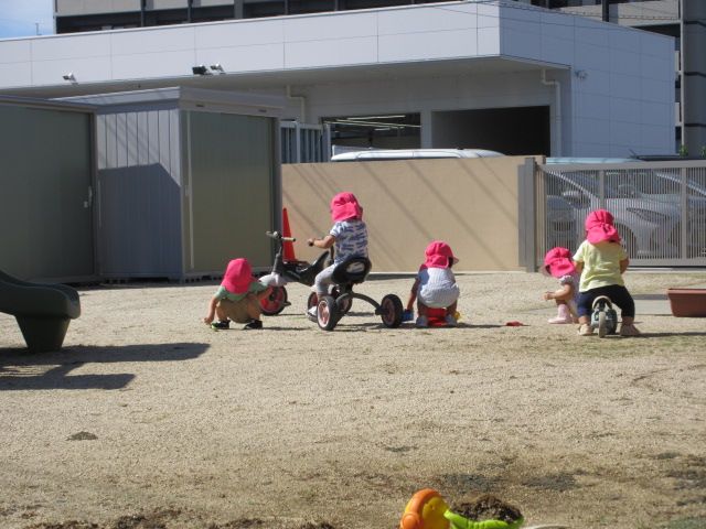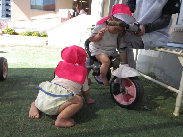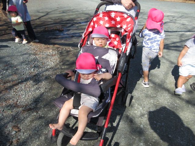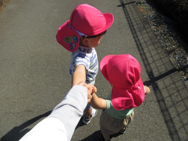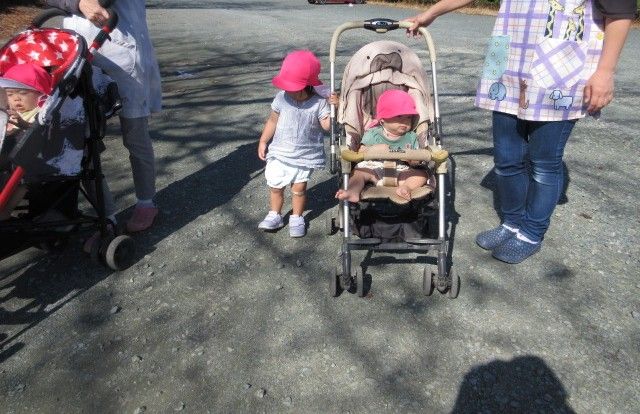ベビーカーに乗ってお散歩に出かけていたお友達も 大人と手をつないで歩いていけました。