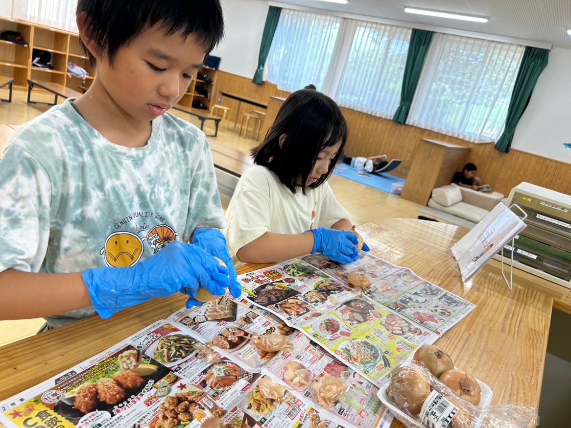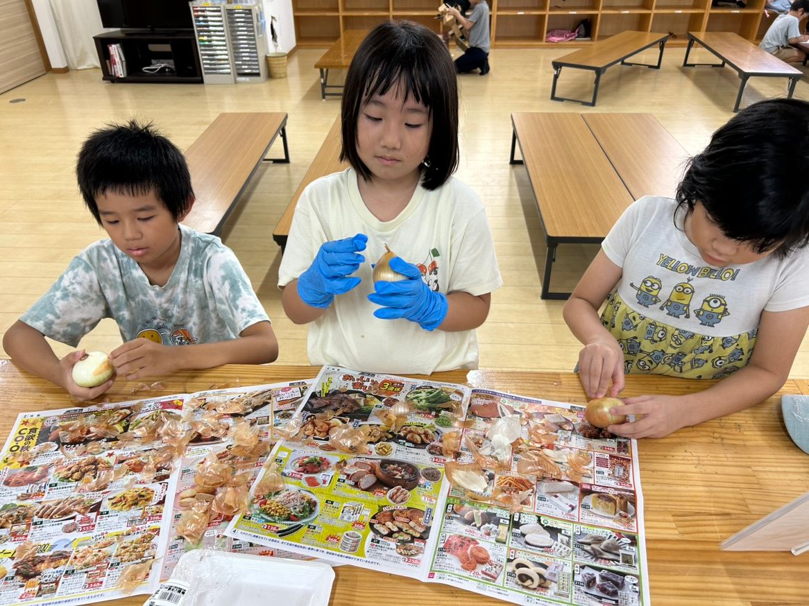 こちらは、玉ねぎむき隊。皮をむいてるだけでも目が・・・と言っていました💦