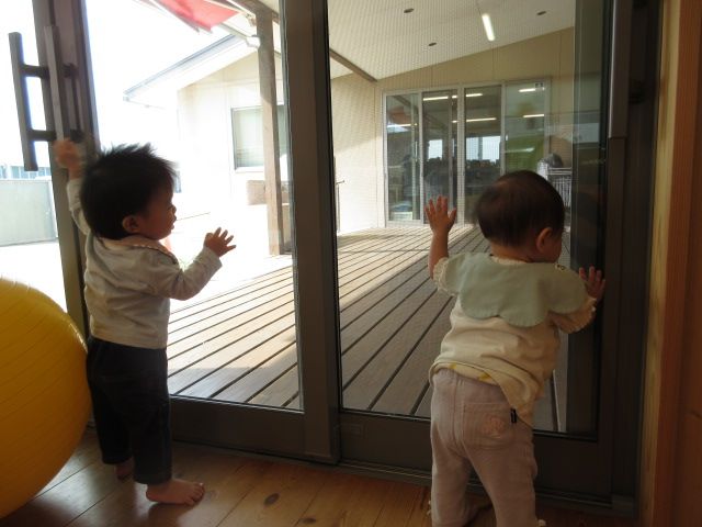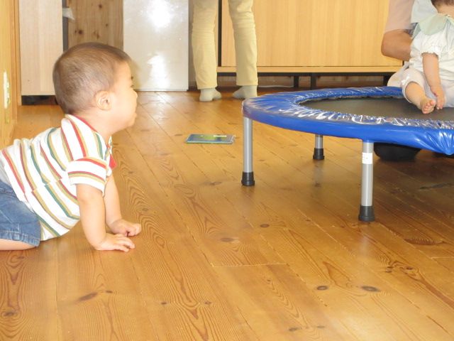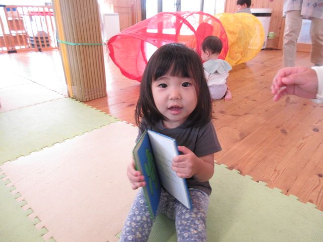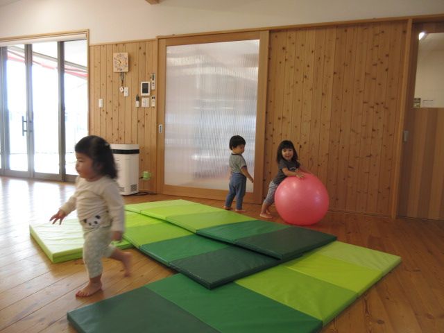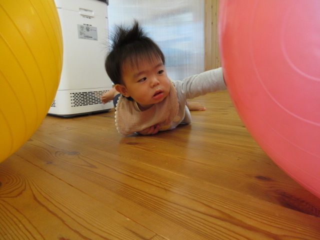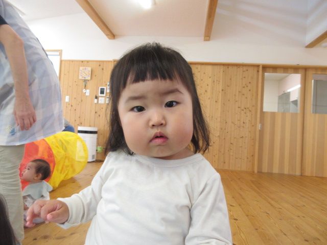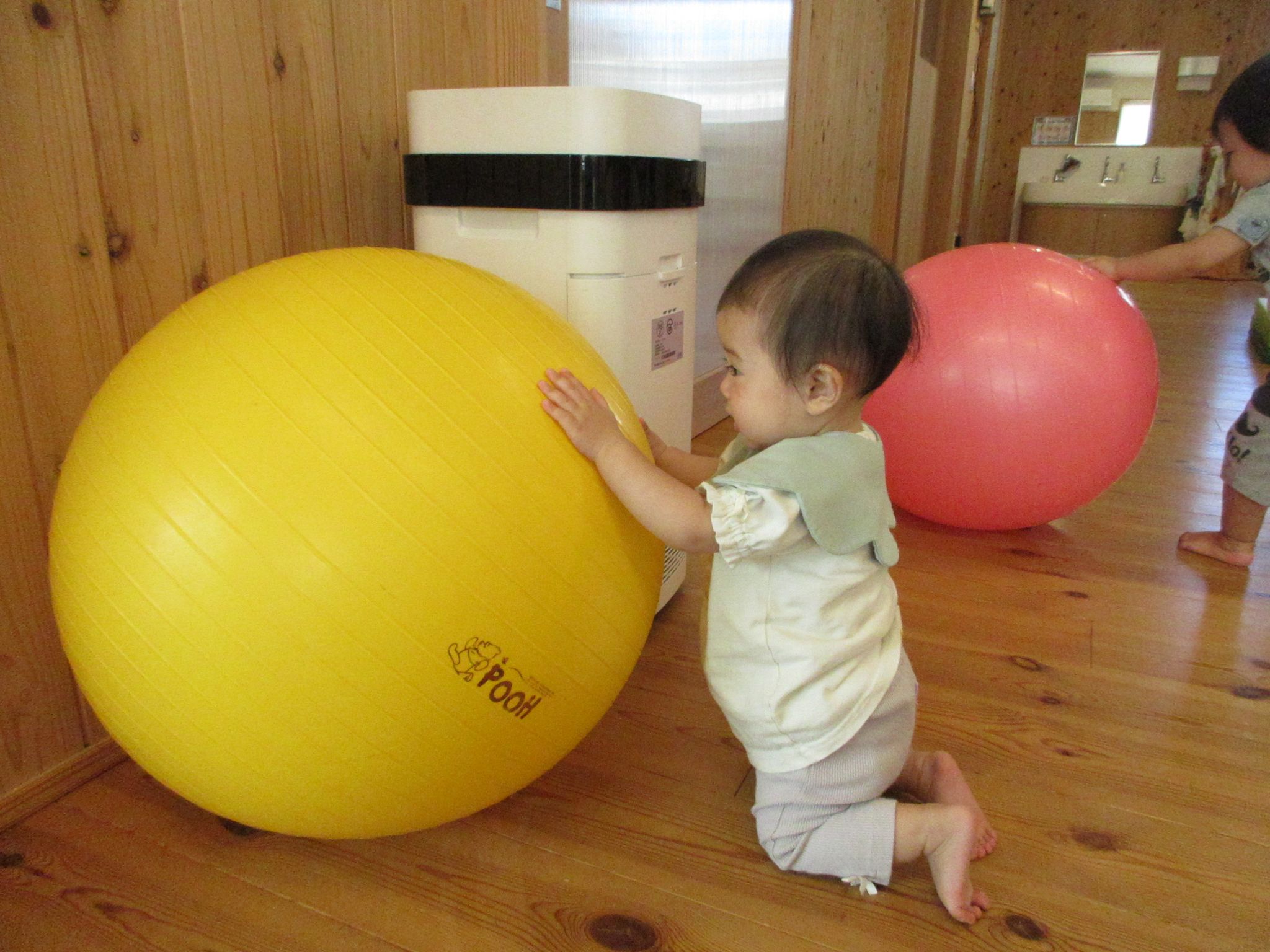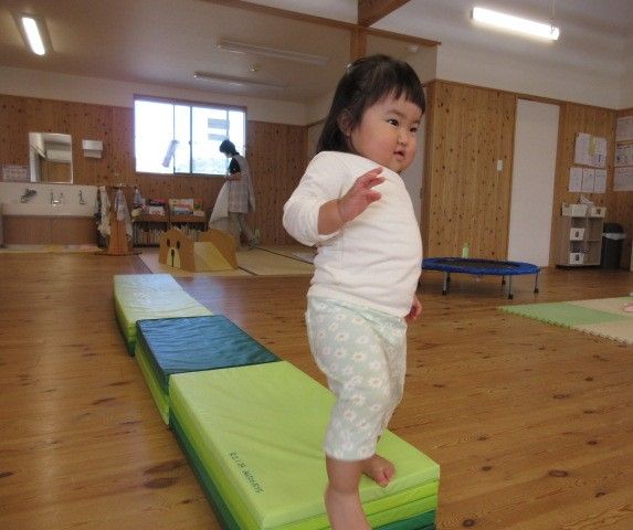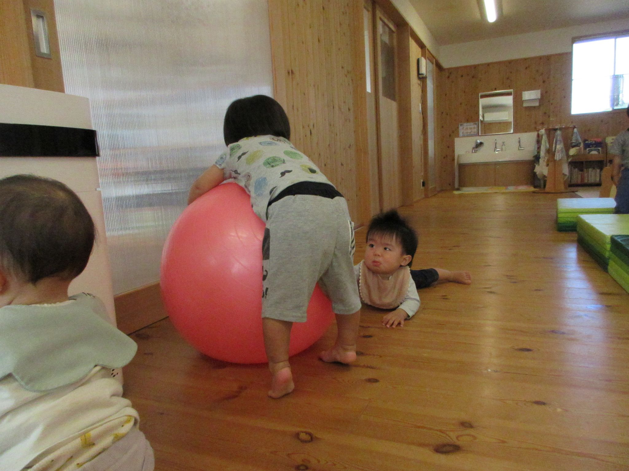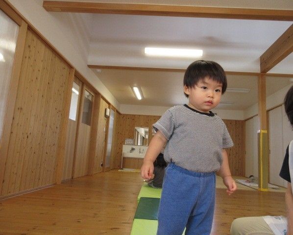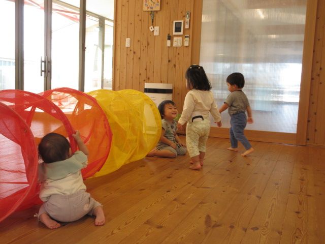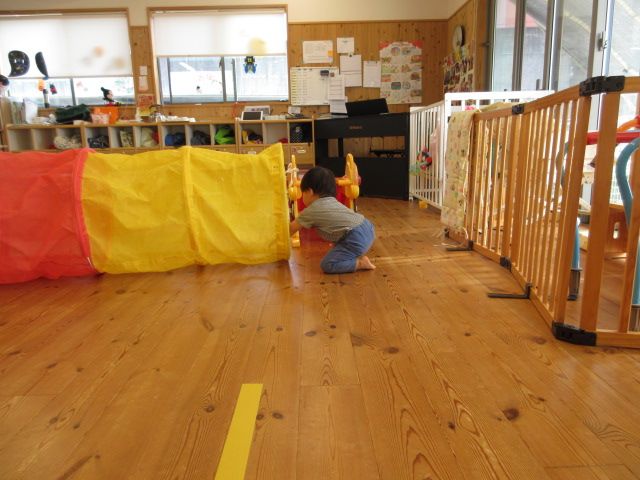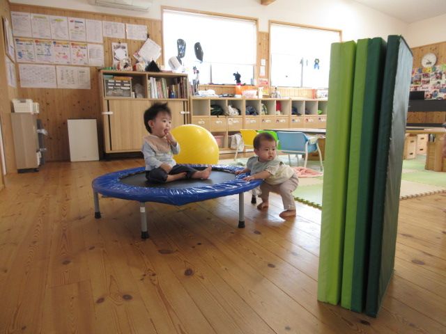 今年度3歳になるお友達が、おひさま保育園へ「リズム体操」にいっている間、0歳・1歳のお友達は、室内でたくさん身体を動かしました!(^^)!
