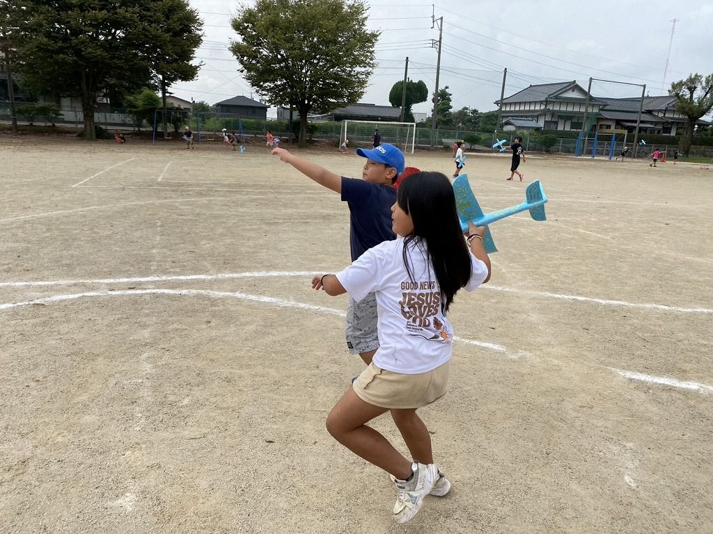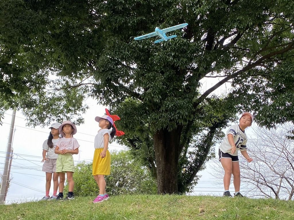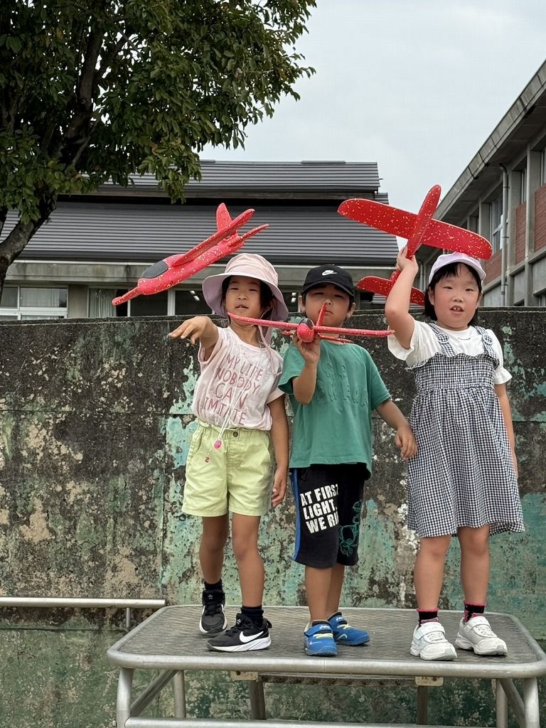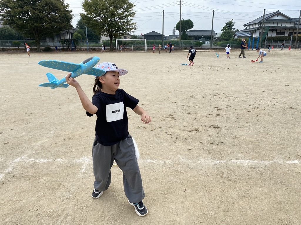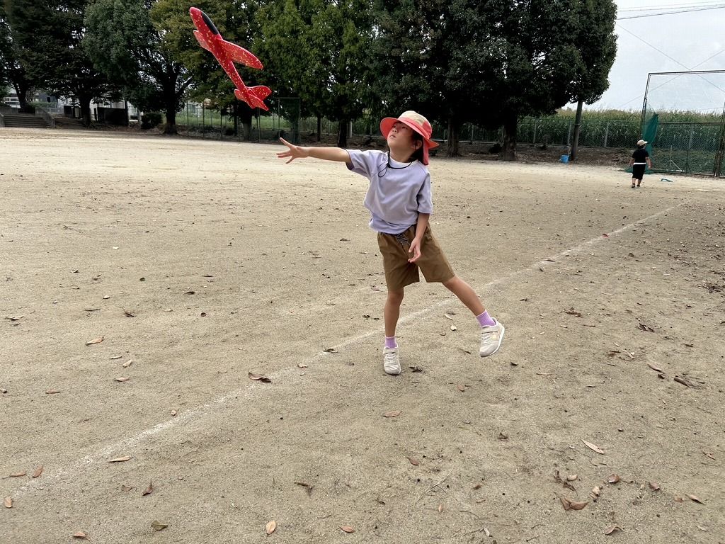 運動場に出て、みんなで飛行機を飛ばすぞーーー!!
