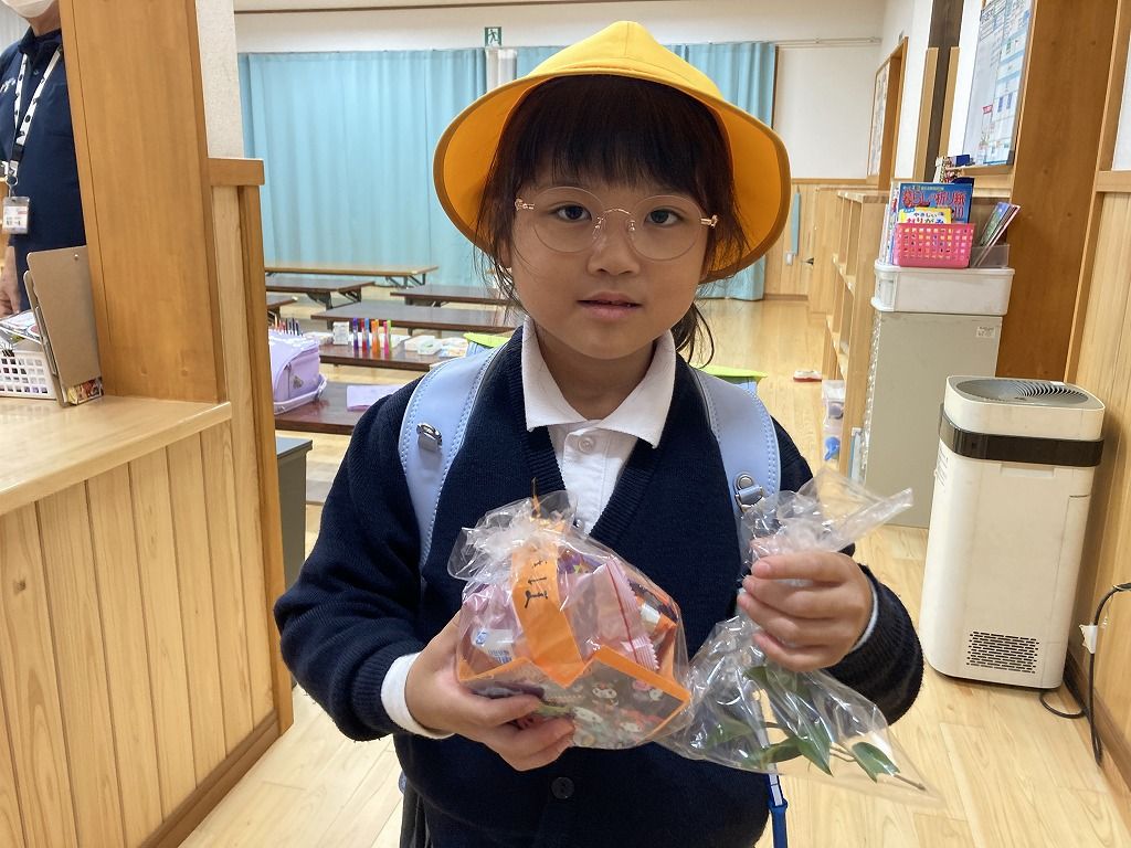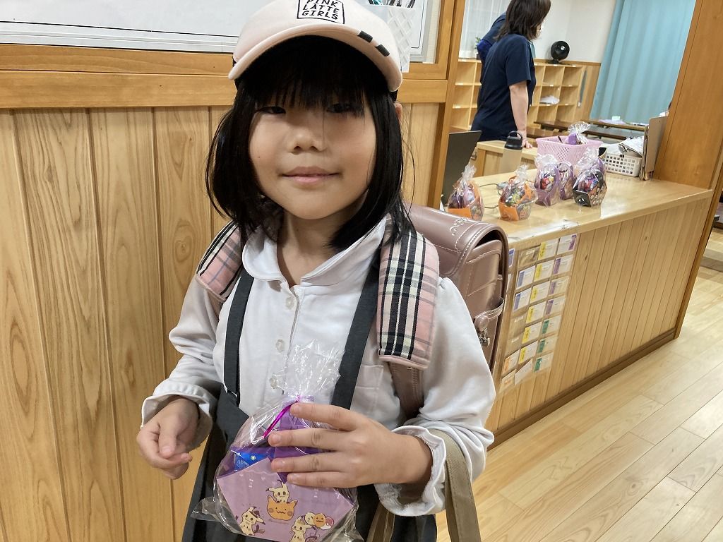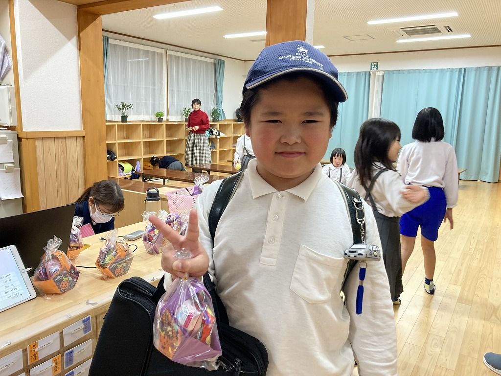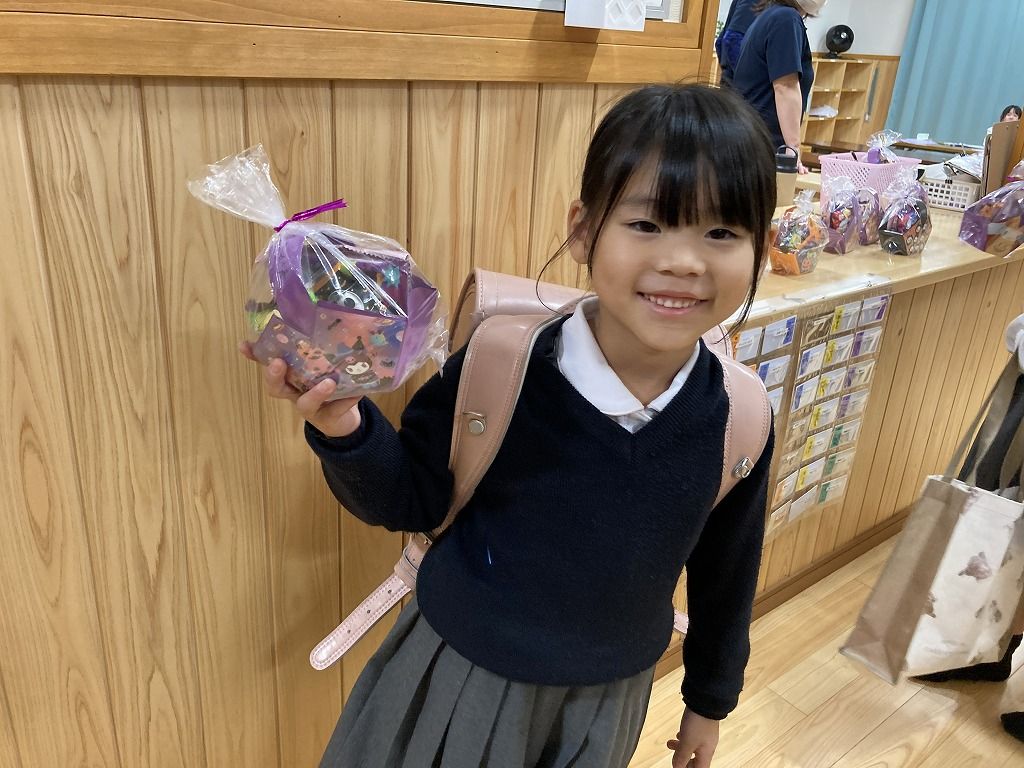 ハロウィンの日は、自分でつくったお菓子かごにおやつを入れてもらいました。