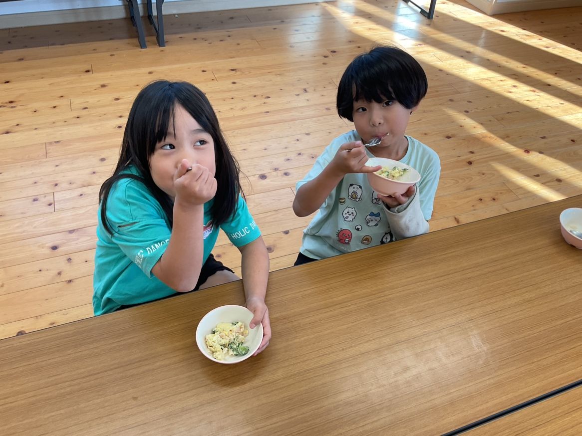 今日のおやつは食育!「ポテトサラダ」でした🥔✨ 3年生がお手伝いをしてくれて、まぜる作業やゆでた卵の殻むきをとても上手にしてくれました👏