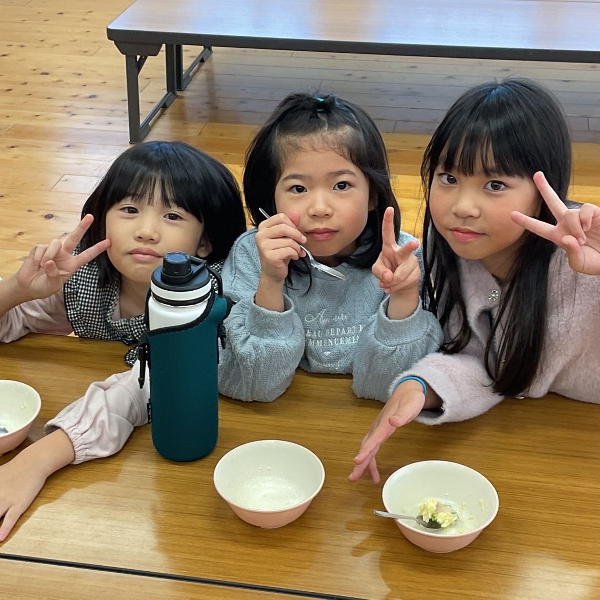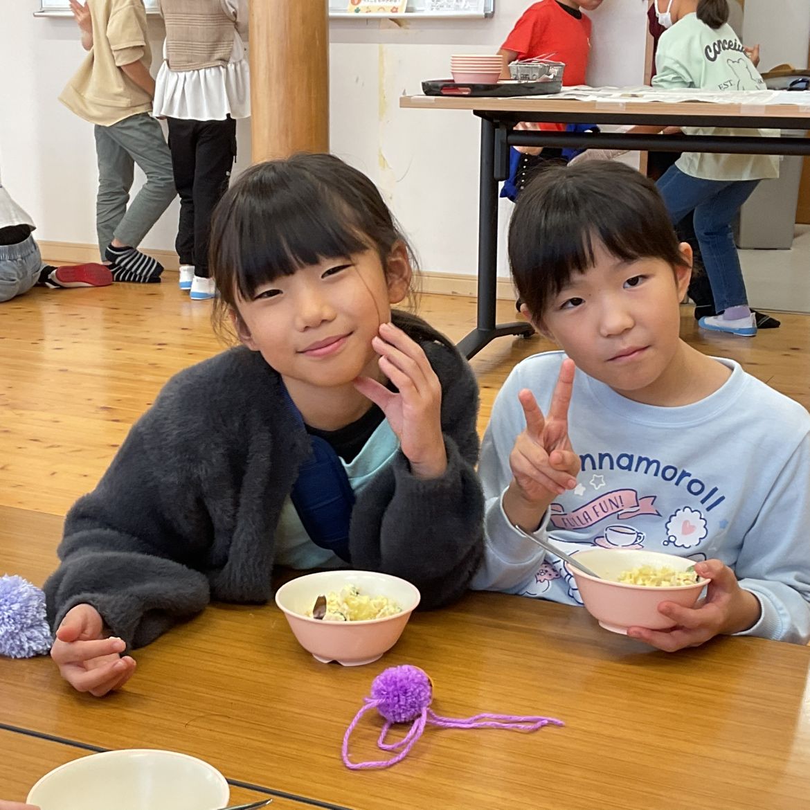 お手伝いしてくれた3年生の姿を見て、 「自分もやってみたい!」と手伝いをしてくれました。 みんなで作るおやつは、いつもよりもっとおいしく感じますね🍴💛