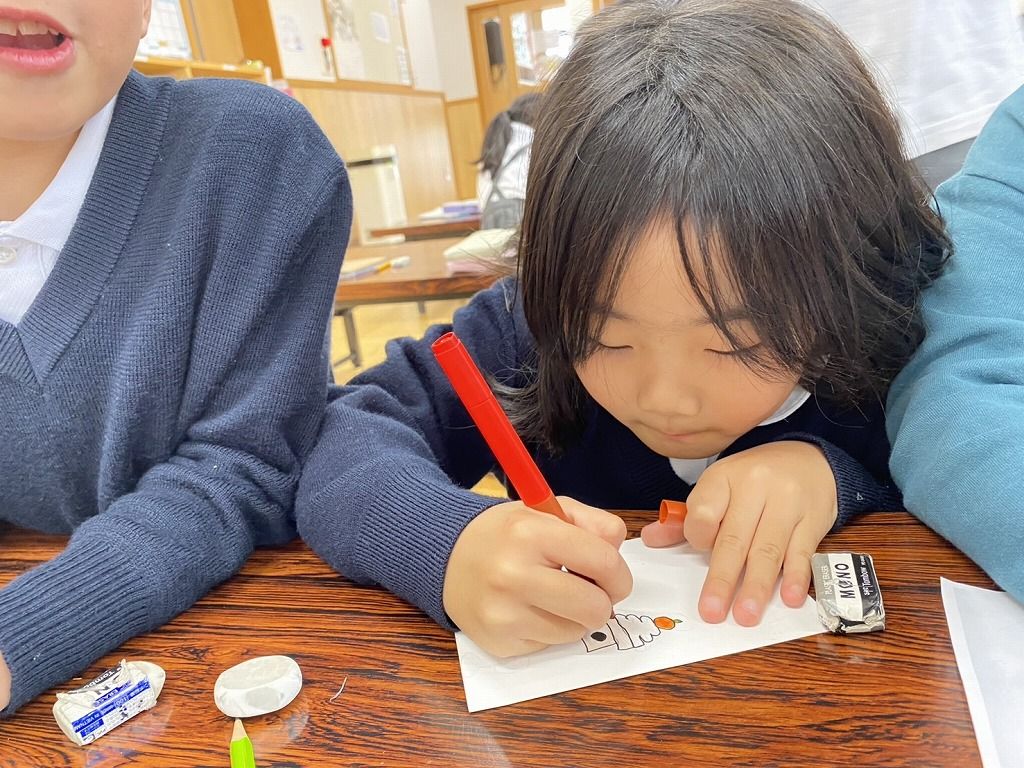 毎年学童から子どもたちへ送っていた年賀状を、今回は子どもたちから「おうち」の人に年賀状を書くことにしました。