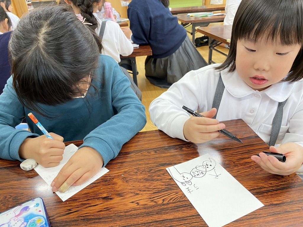 宛名書きにパパへ、ママへと書いているお子さんもいましたよ。
