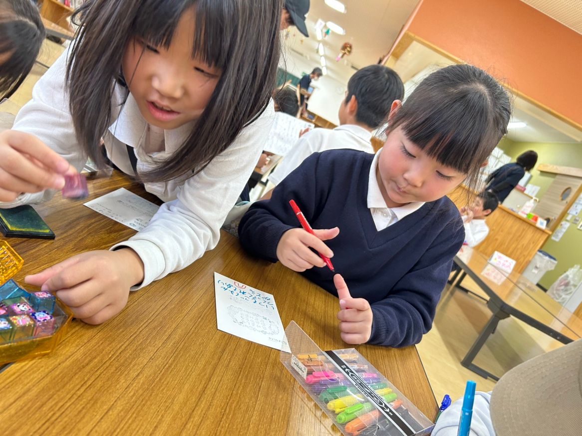 カラーペンで可愛く文字を書いている様子がありました🌼