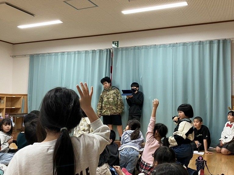アニメや映画の曲などがかかり、みんな「ハイ!! ハイ!!」と手を挙げて答えていました。