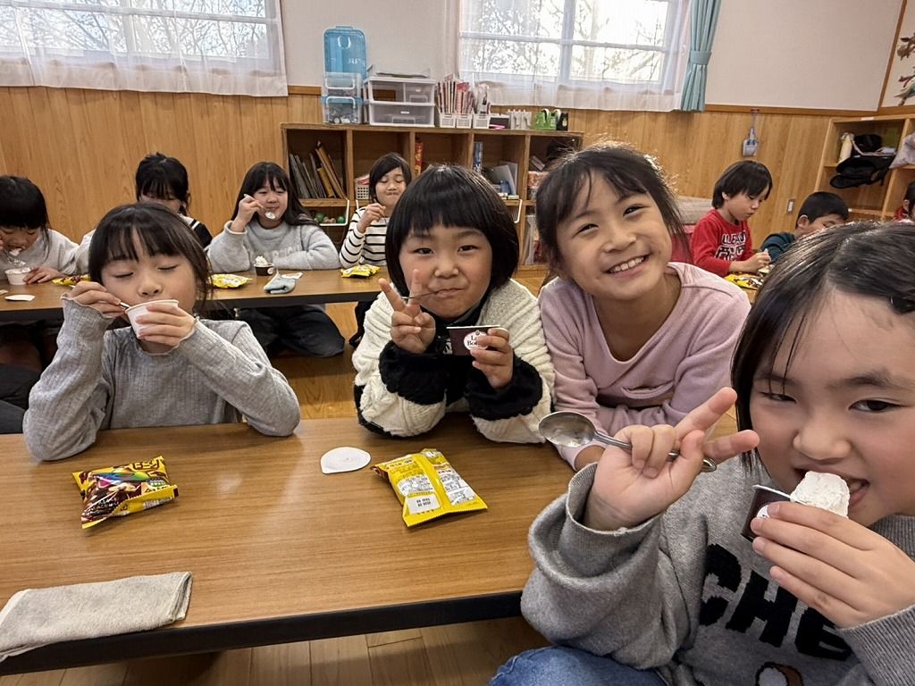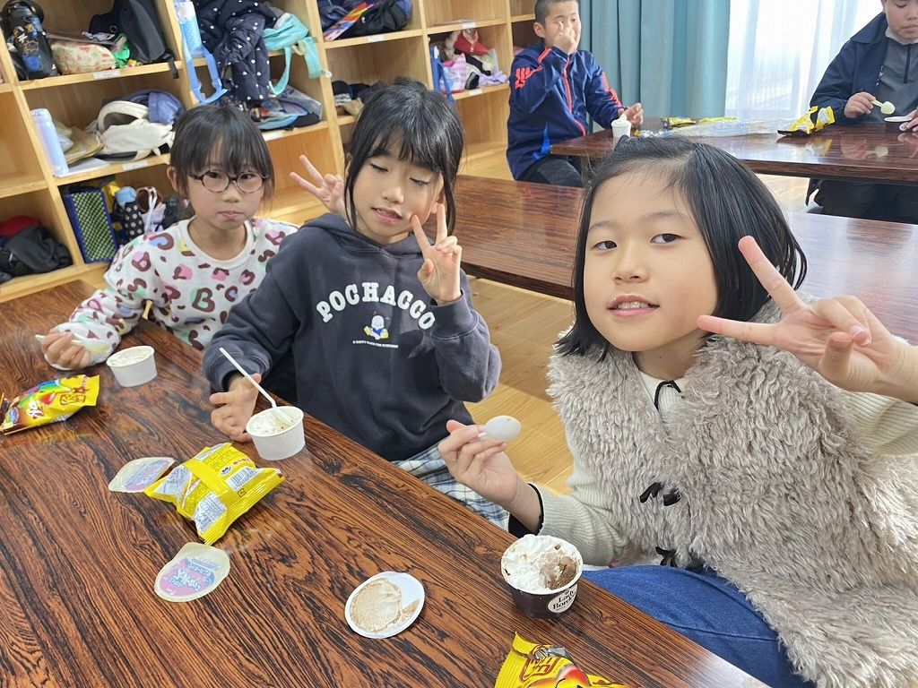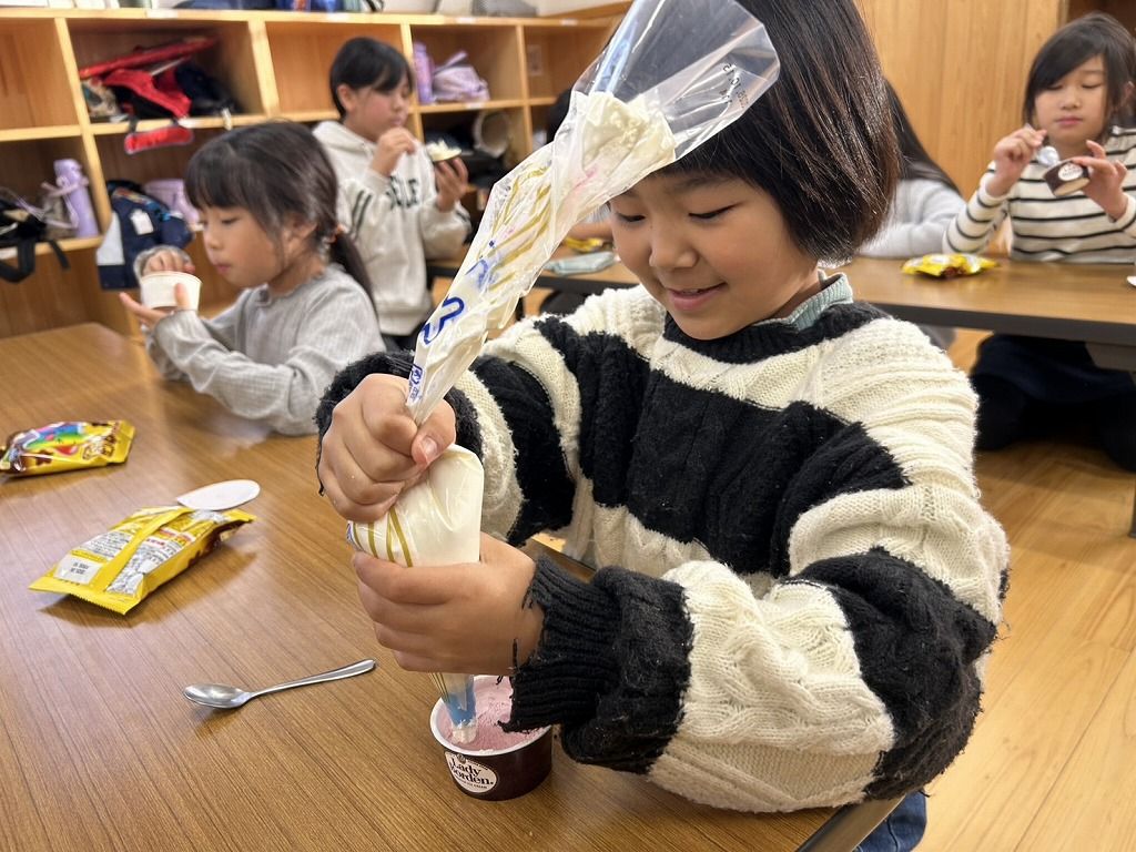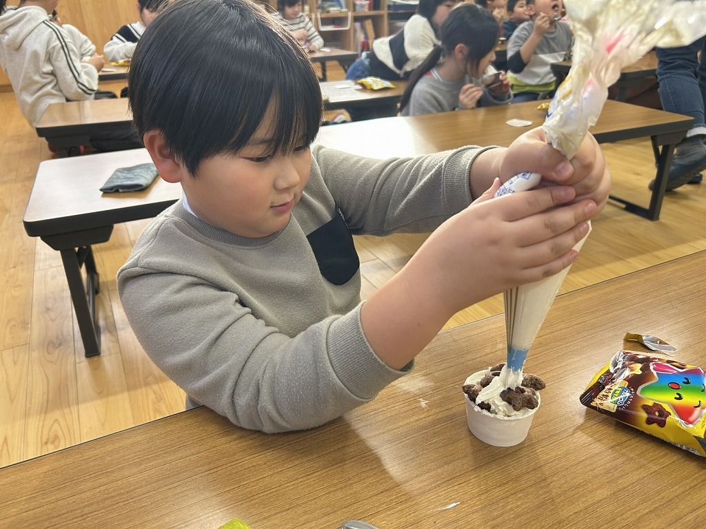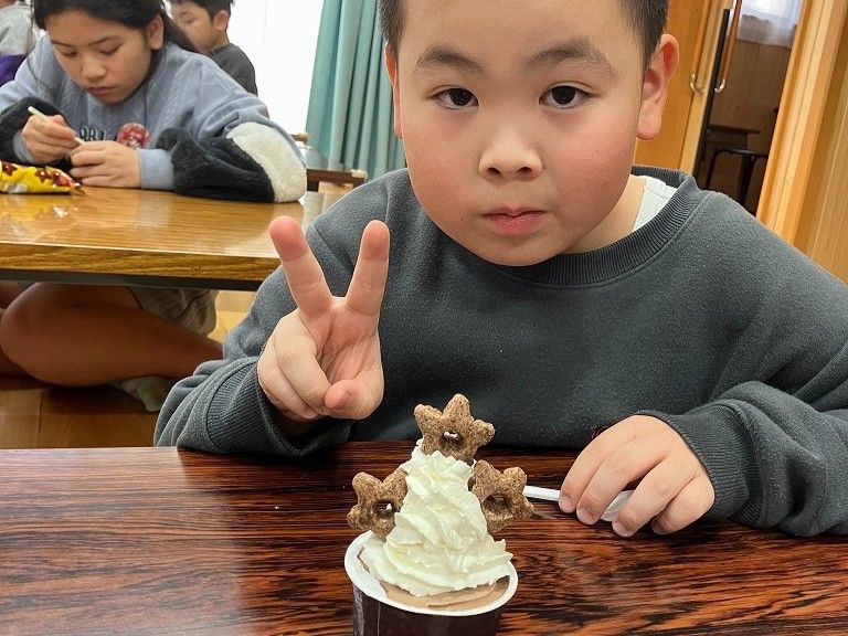 クリスマスの日のおやつは、バニラアイスの上に生クリームと星たべよをトッピングしました。
