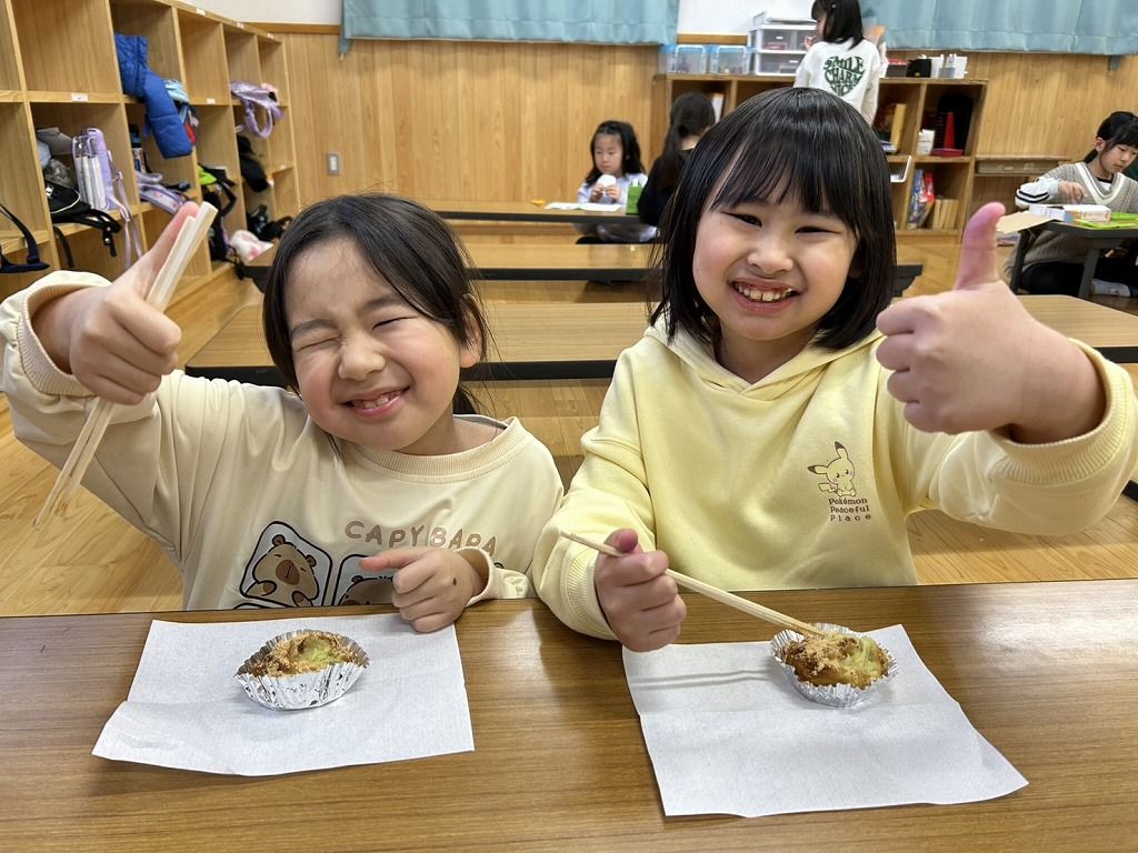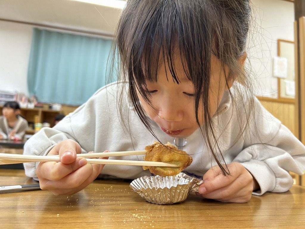 さつまいもが入っているので歯切れもよく、冷めても硬くならないので、こどもたちのおやつにピッタリです。ぜひ、お家でも作ってみてくださいね。