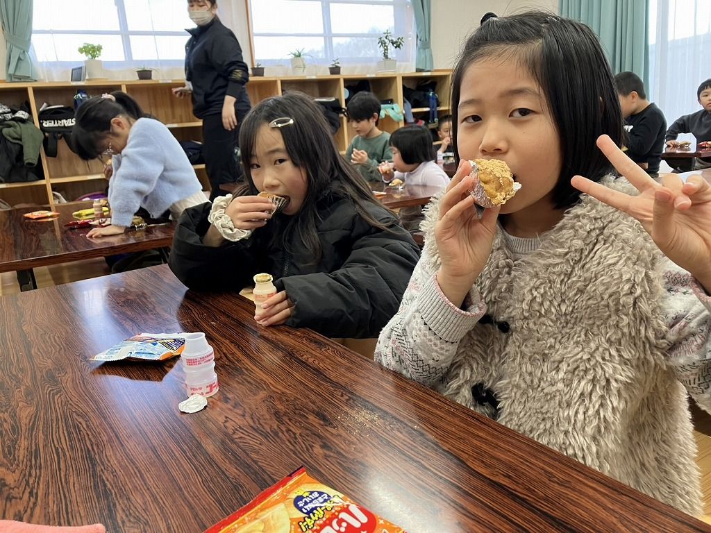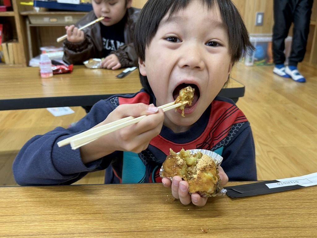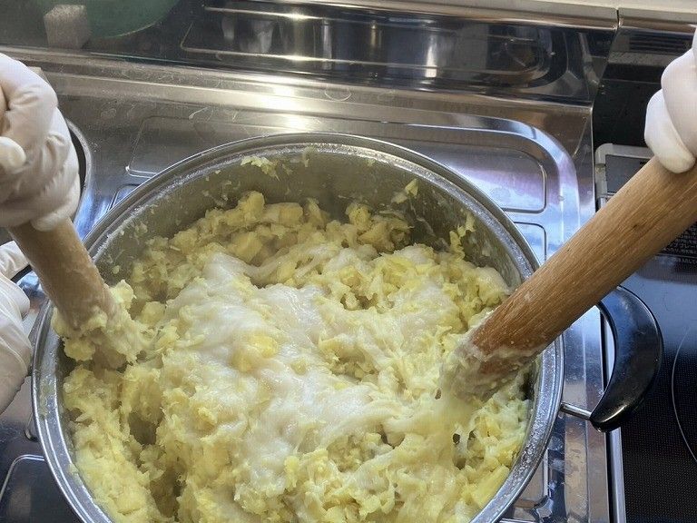 お正月には、さつまいももちを作りました。