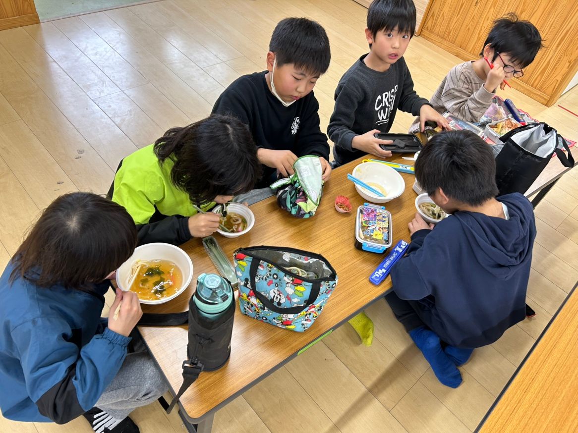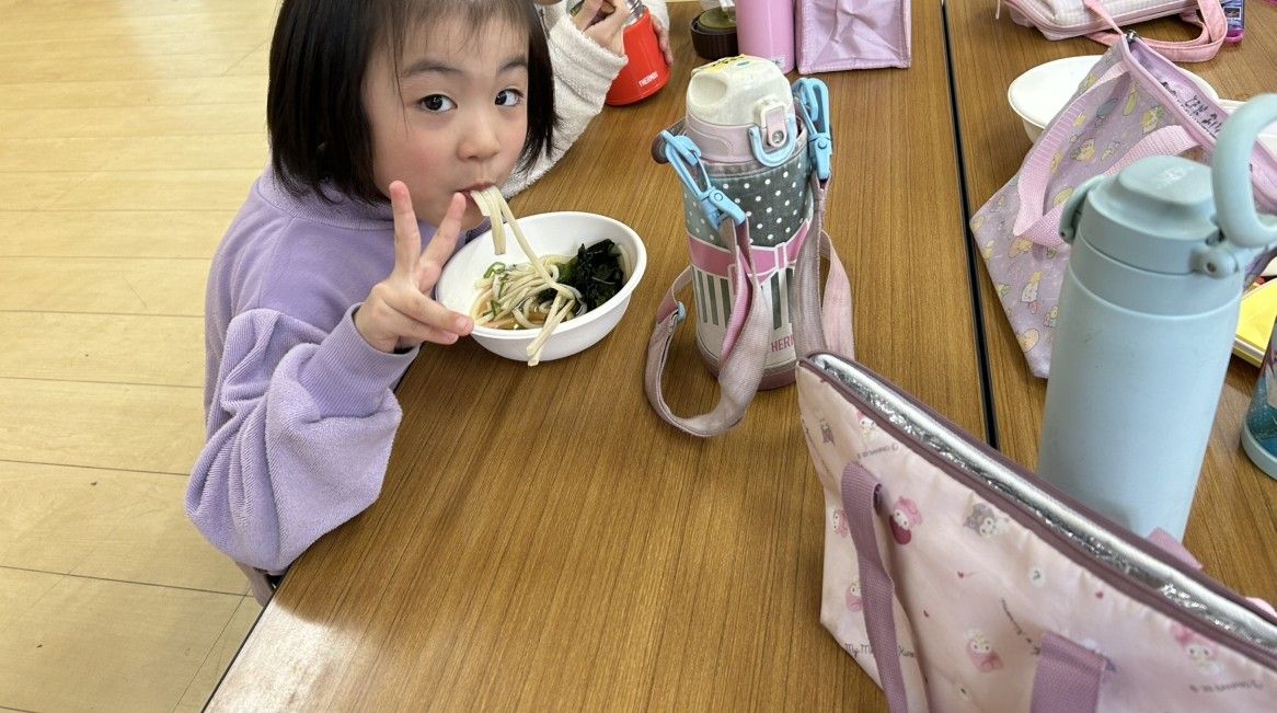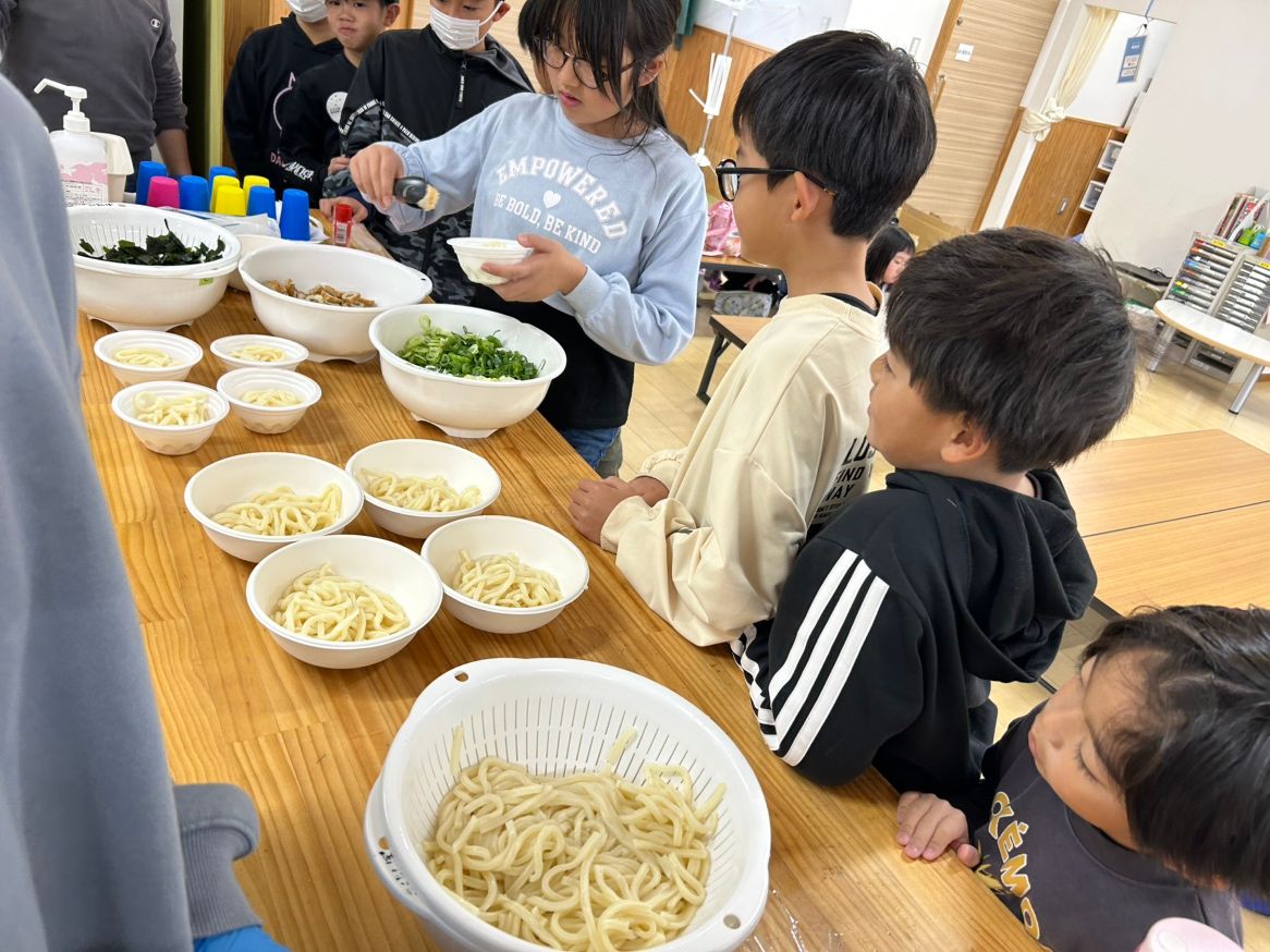 うどんにのせるトッピングを聞き、のせてあげたり、スープを入れたりするお手伝いは高学年の子どもたちがしてくれていました😊