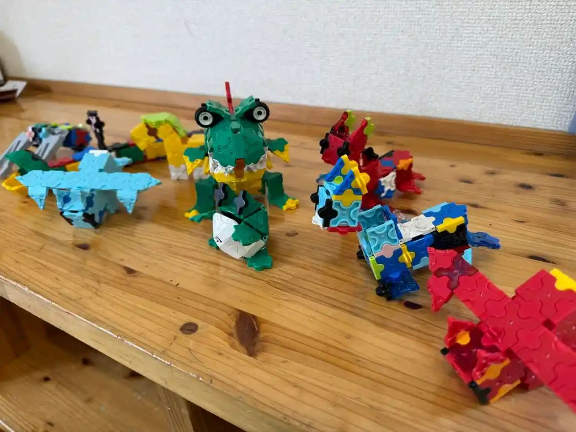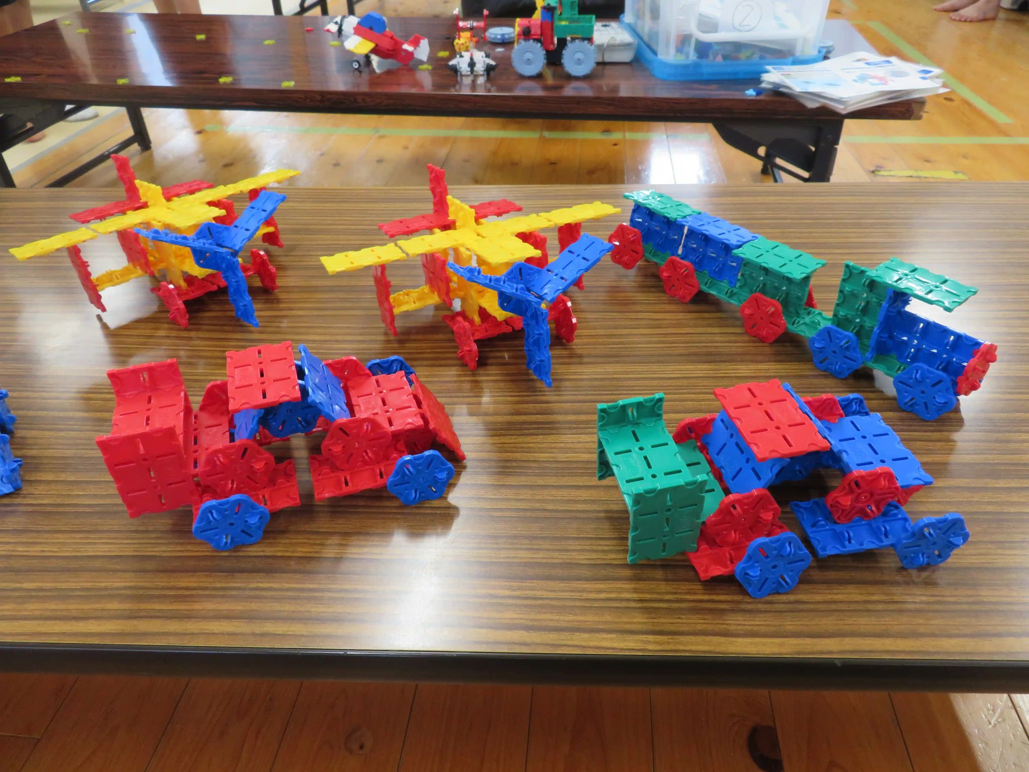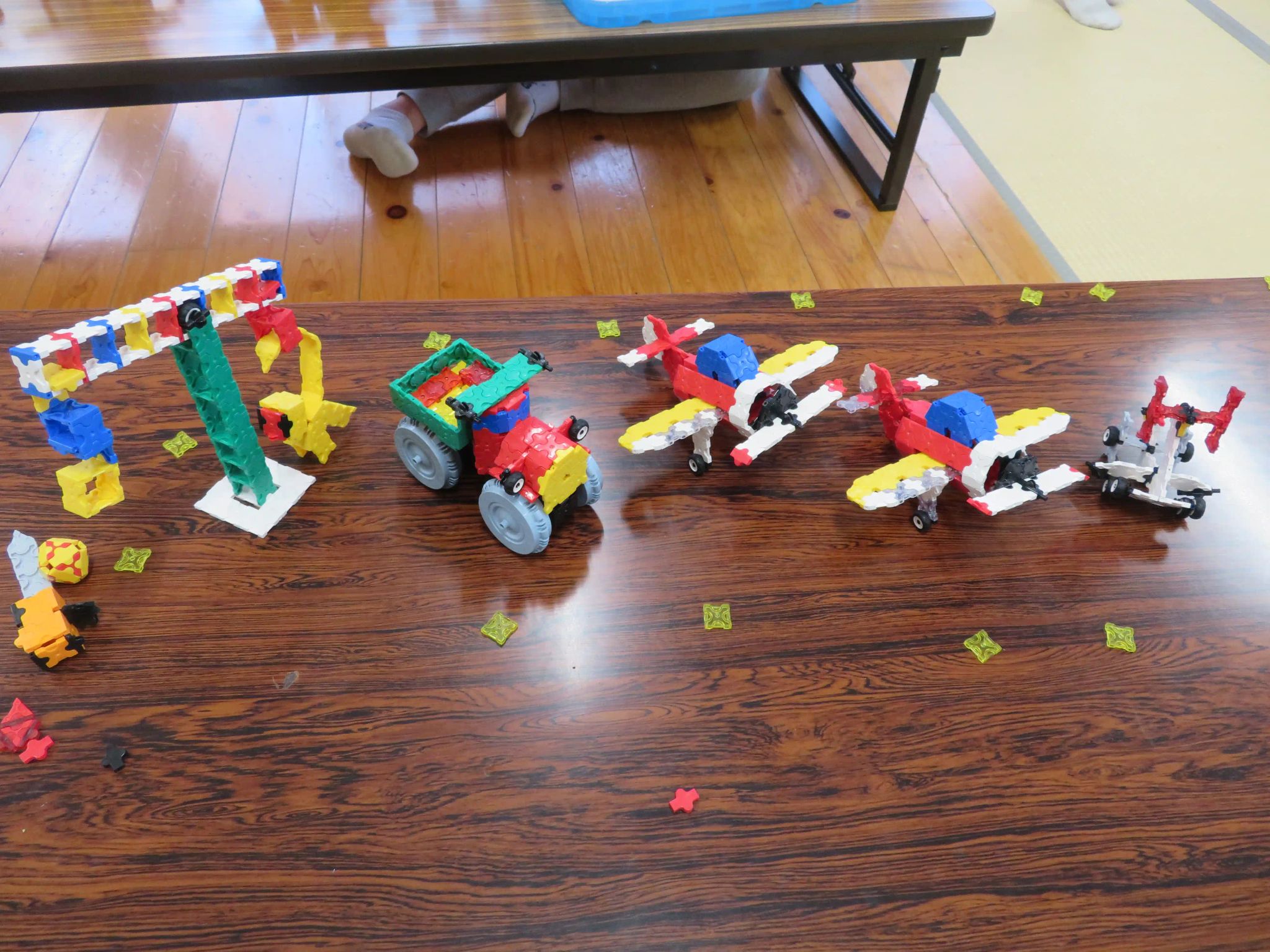 説明書を見たり、自分で考えたりしながらいろんな作品が出来上がりました