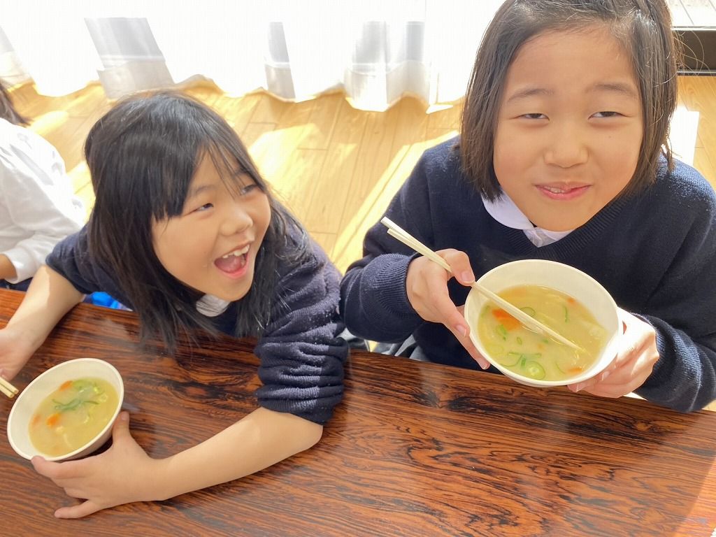 1月28日、護川小学校では、「持久走大会」が行われました。 持久走でがんばった子どもたちに、愛情いーっぱい込めたあったかいお味噌汁を用意しました。