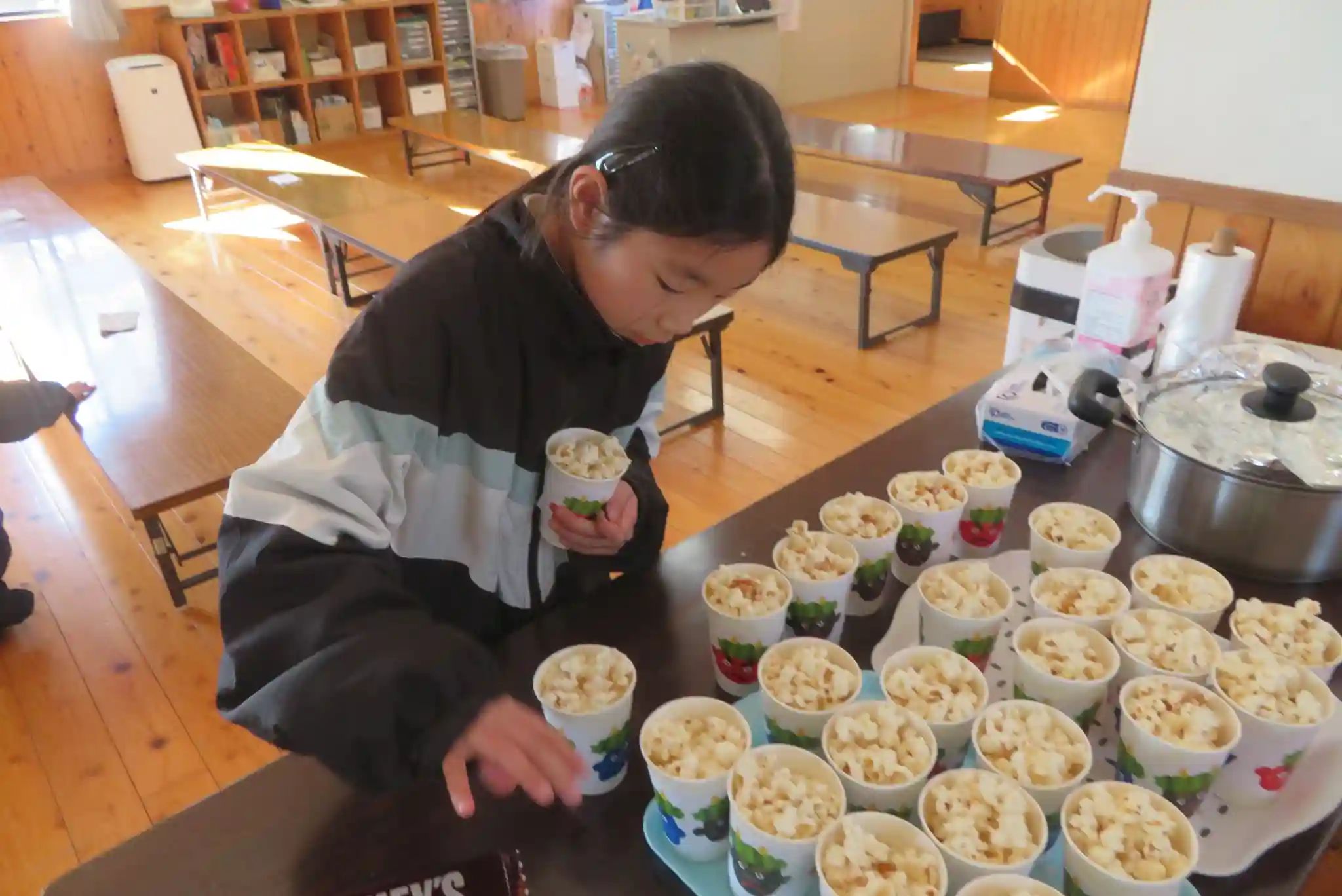玄関を開けると『ポップコーンの匂いだー』「やったー!今日はポップコーンだー」と・テンションUPのこどもたち