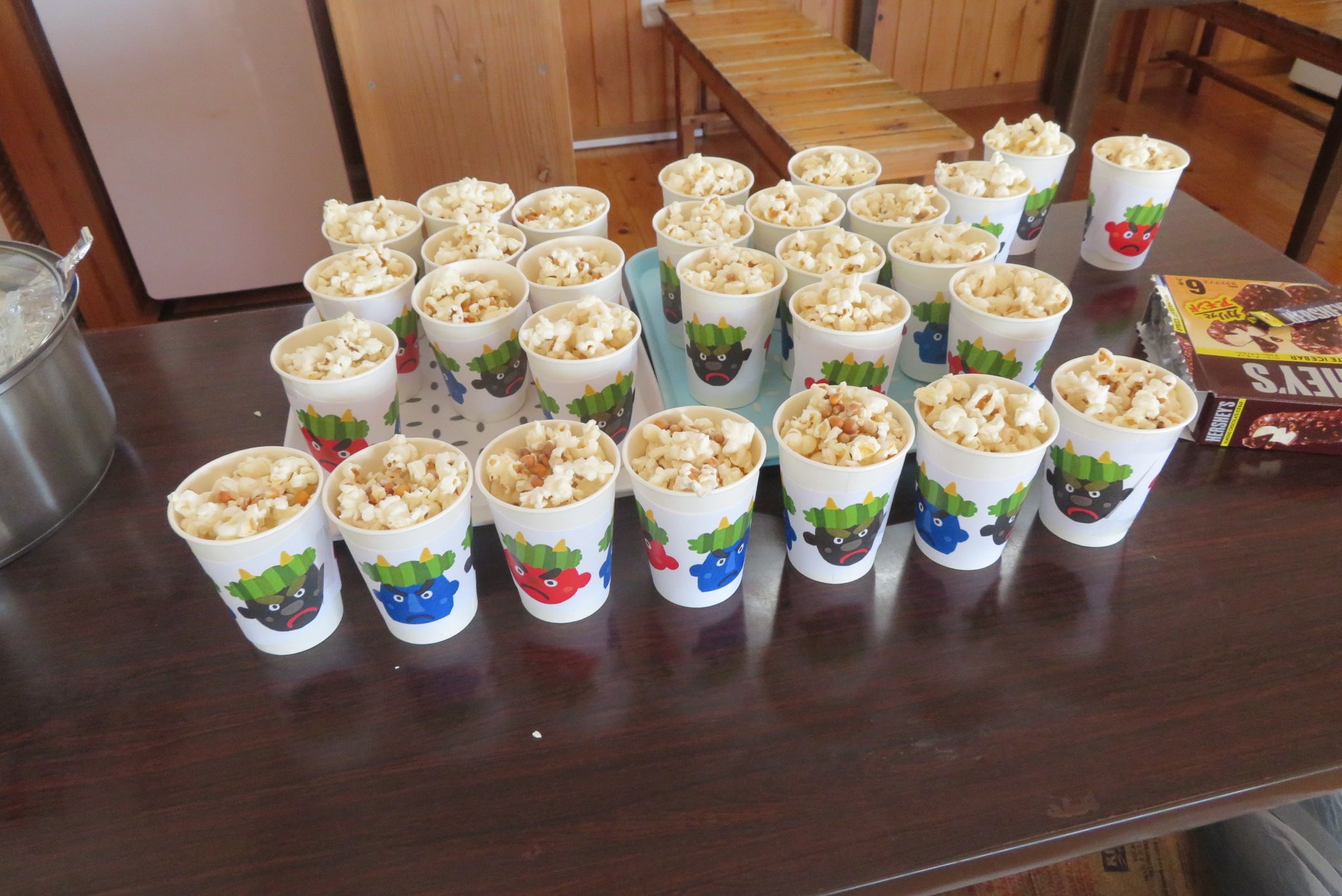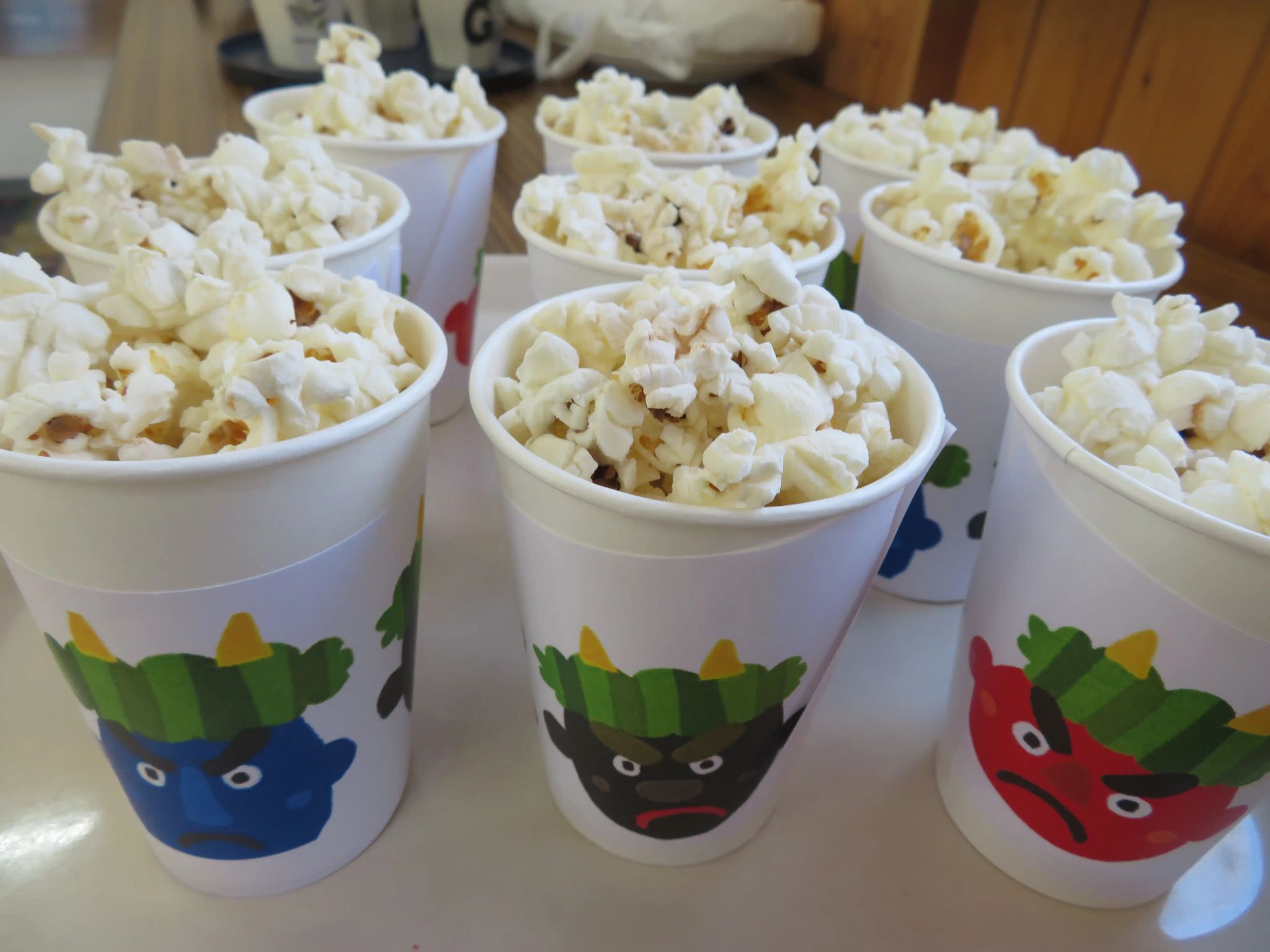 鬼さんイラスト付きカップ入りポップコーンと鬼に金棒アイスに決定!!