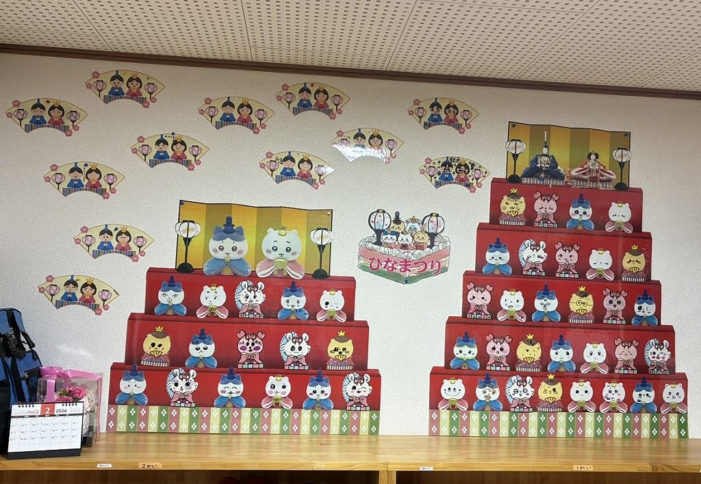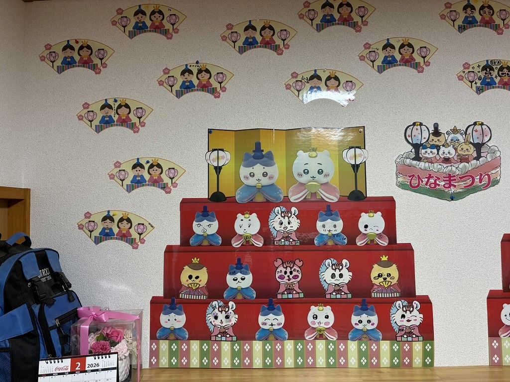 2月の鬼は怖い顔だったけど、今回はかわいいーーーーお雛様をお願いしますね。