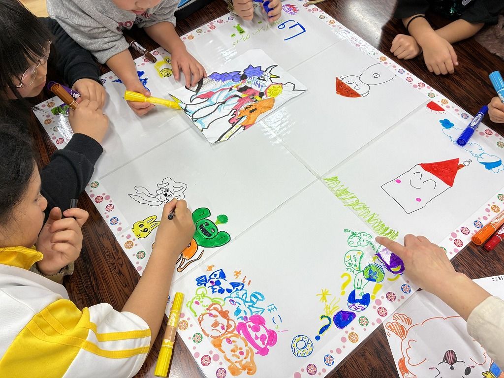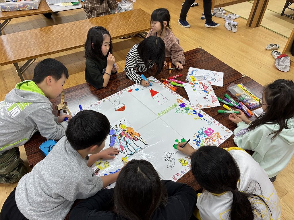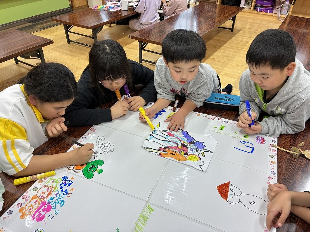 3月に入り、新1年生への歓迎ボードの制作をはじめました。 みんな絵を描くのが大好きで、「描きたーーーい、描きたい!!」と毎日描いてくれています。完成まで、楽しみにお待ちください。
