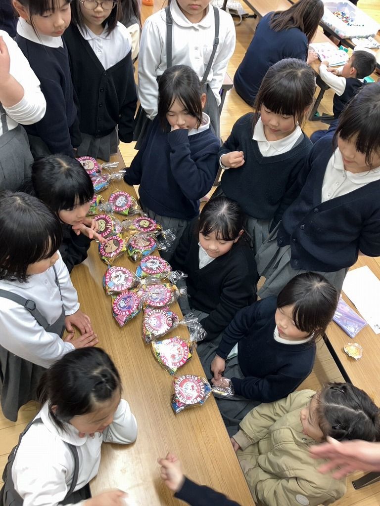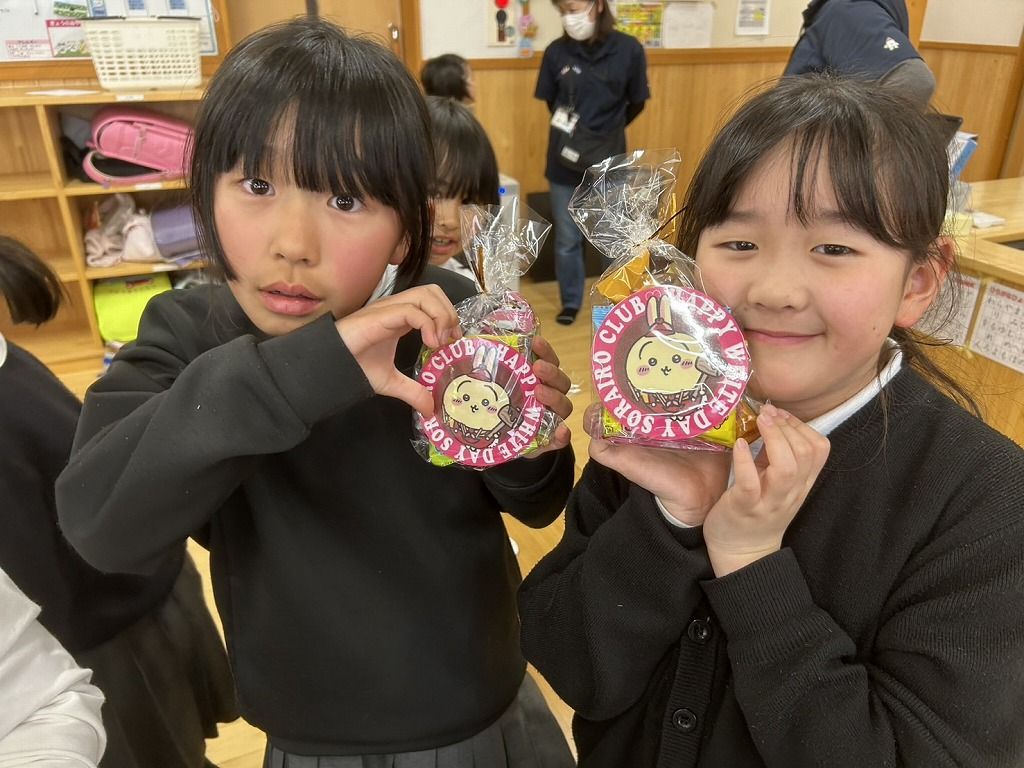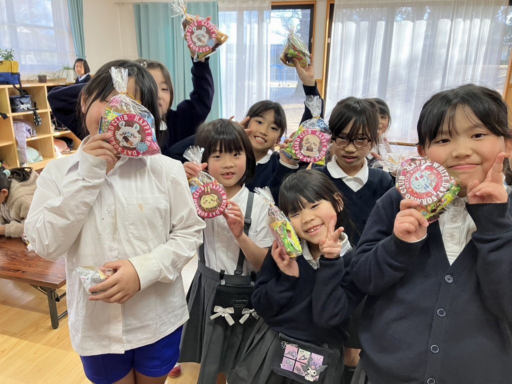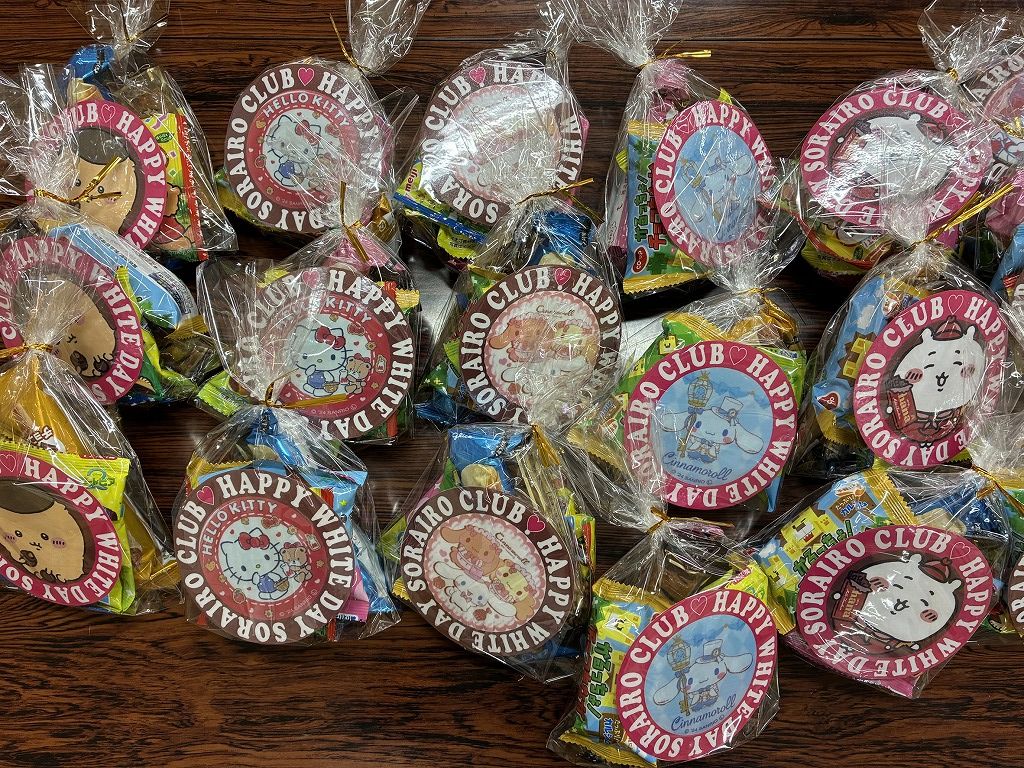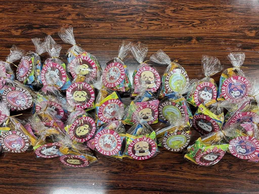ホワイトデーにも子どもたちが大好きなキャラクターでラッピングしたお菓子を配りました。