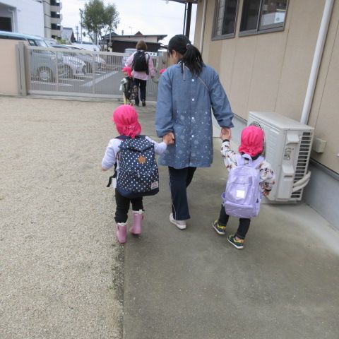 1・2歳のお友達は、どこいくの~と見送りました。(一緒に行きたかったみたいです(^^;)