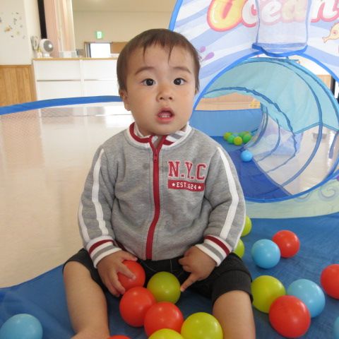 昨日の雨で地面や遊具は濡れているために 子育て支援センターの広場で遊ばせていただきました。