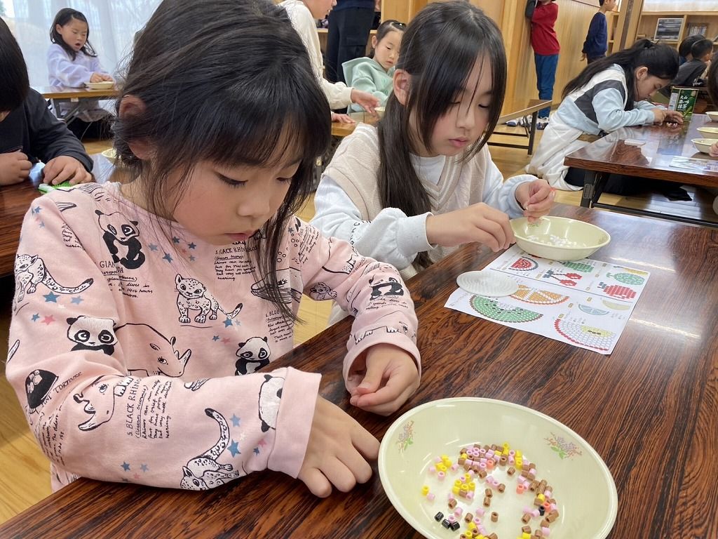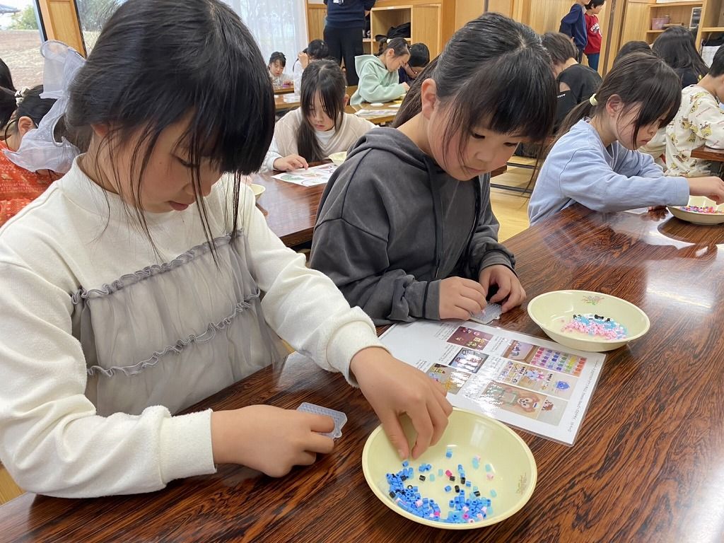 はじめてアイロンビーズを作る子どもたちもいて、みんな真剣に作っています。