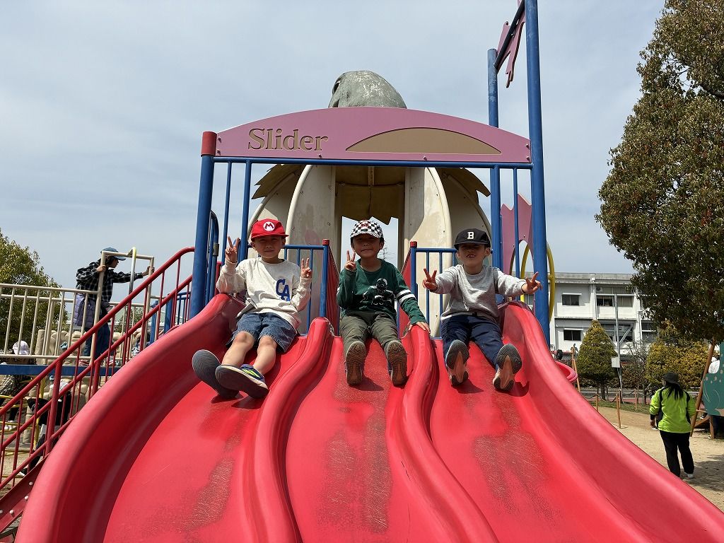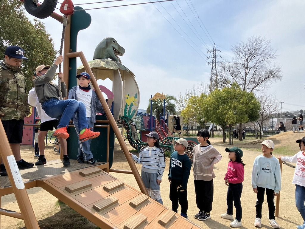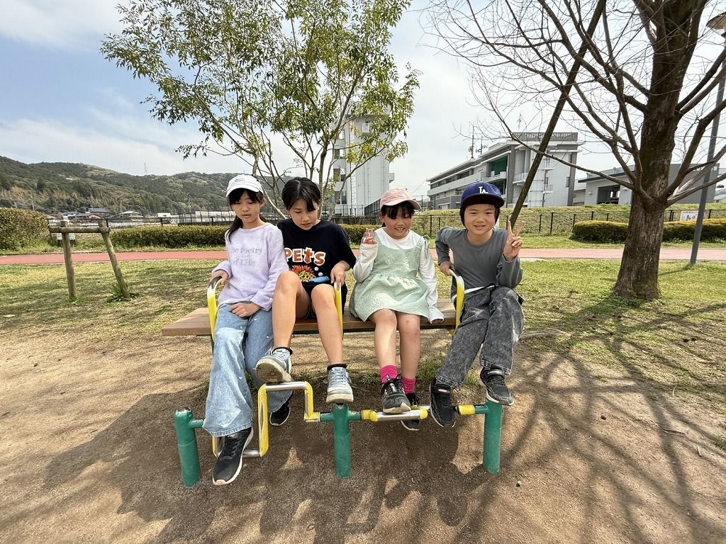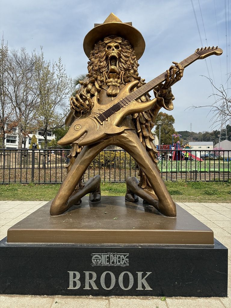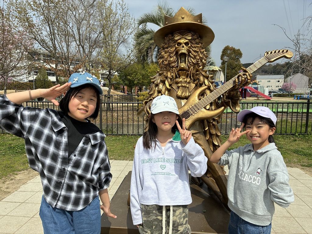 昼食は、御船町のふれあい広場(恐竜公園)で食べました。 公園には、ワンピースのブルック像があります。 たくさんの恐竜の形をした遊具や、すべり台、ジャングルジム、ターザンロープなどもあり、元気いっぱい遊びまわっていました。