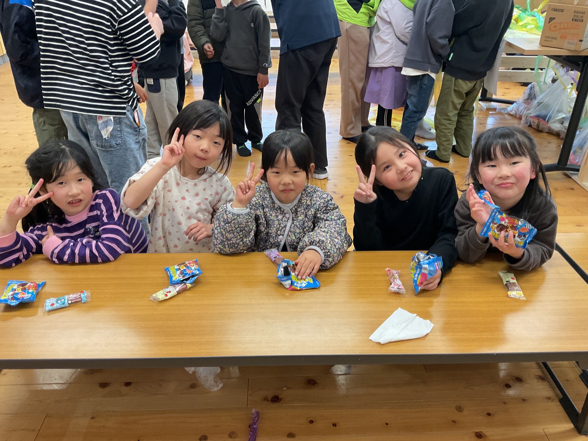 当たったおやつはグループのみんなで分けっこ。「これあげるよ!」「交換しよう!」なんてやりとりもあって、自然と笑顔が広がっていきました🍭