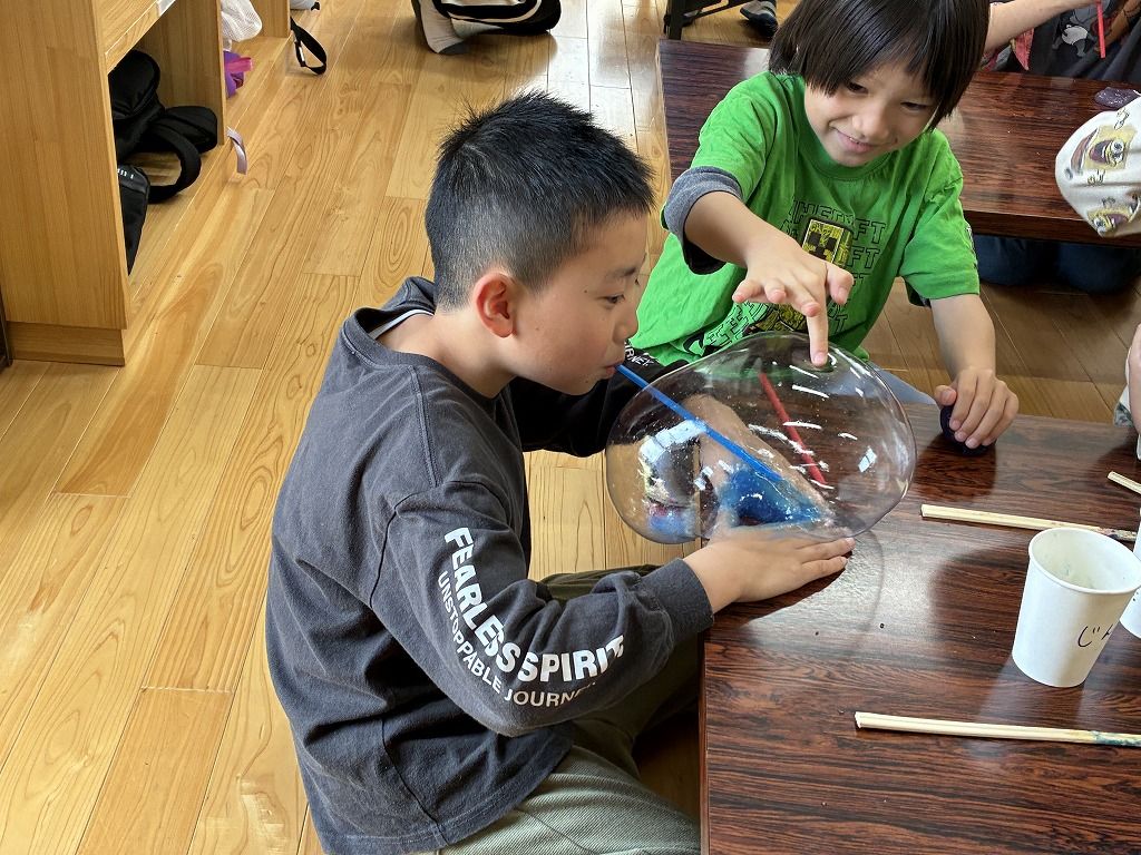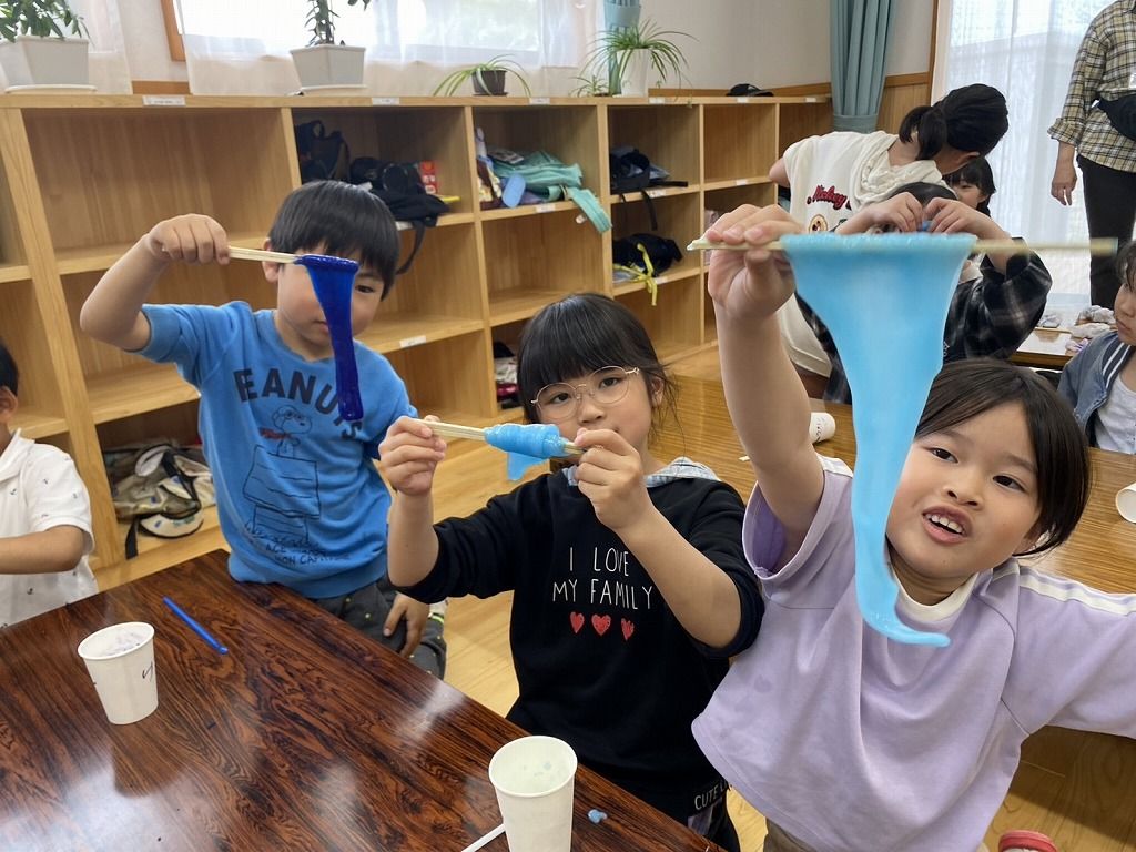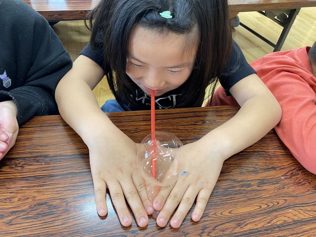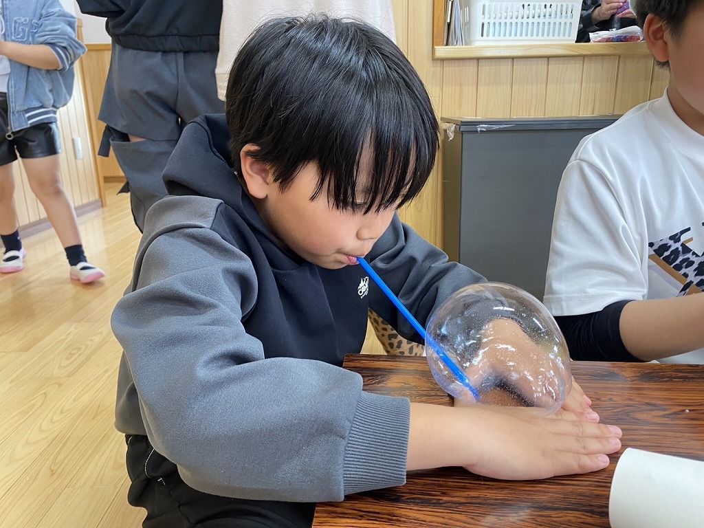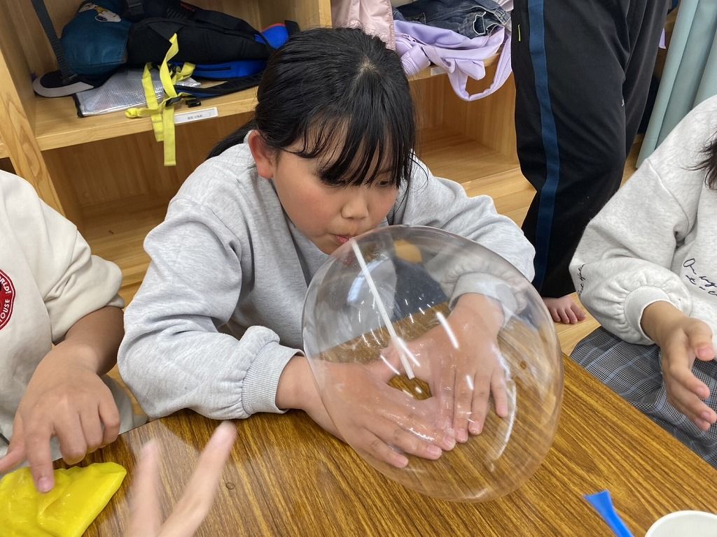 いつもの、スライムで楽しんだあとは、スライム風船に挑戦です!!