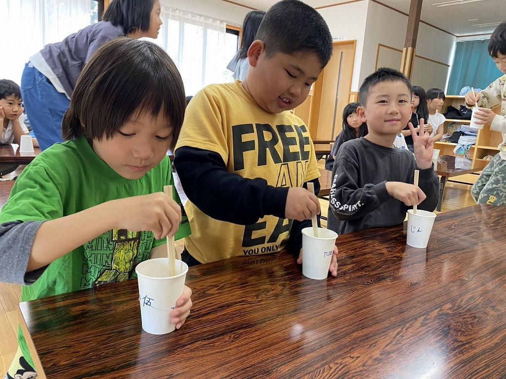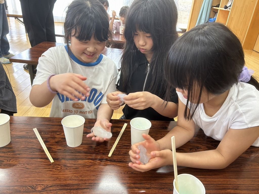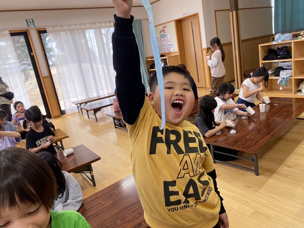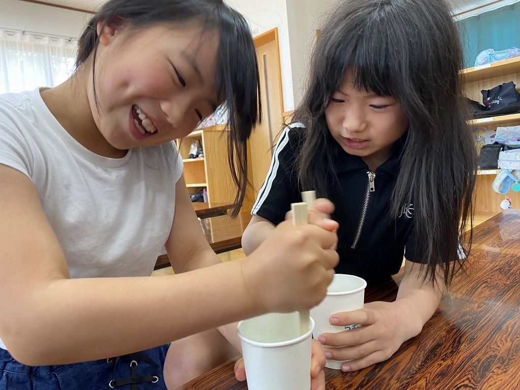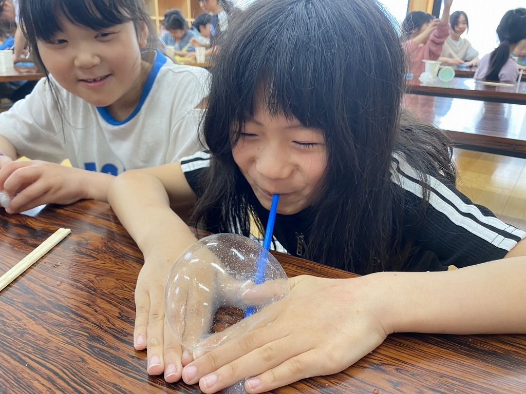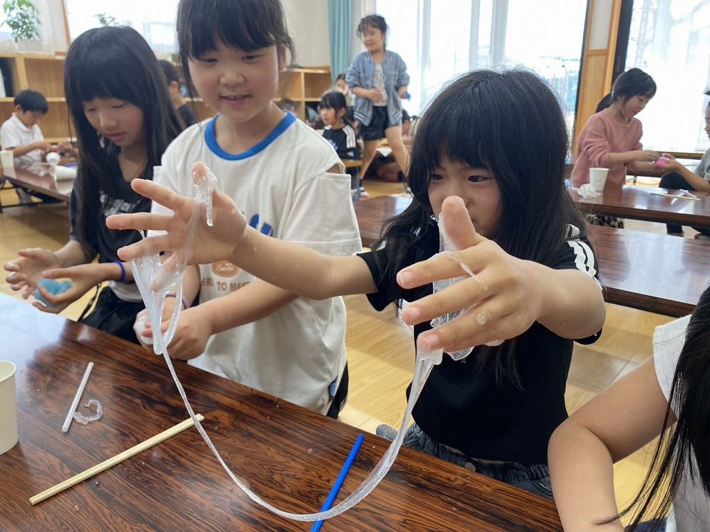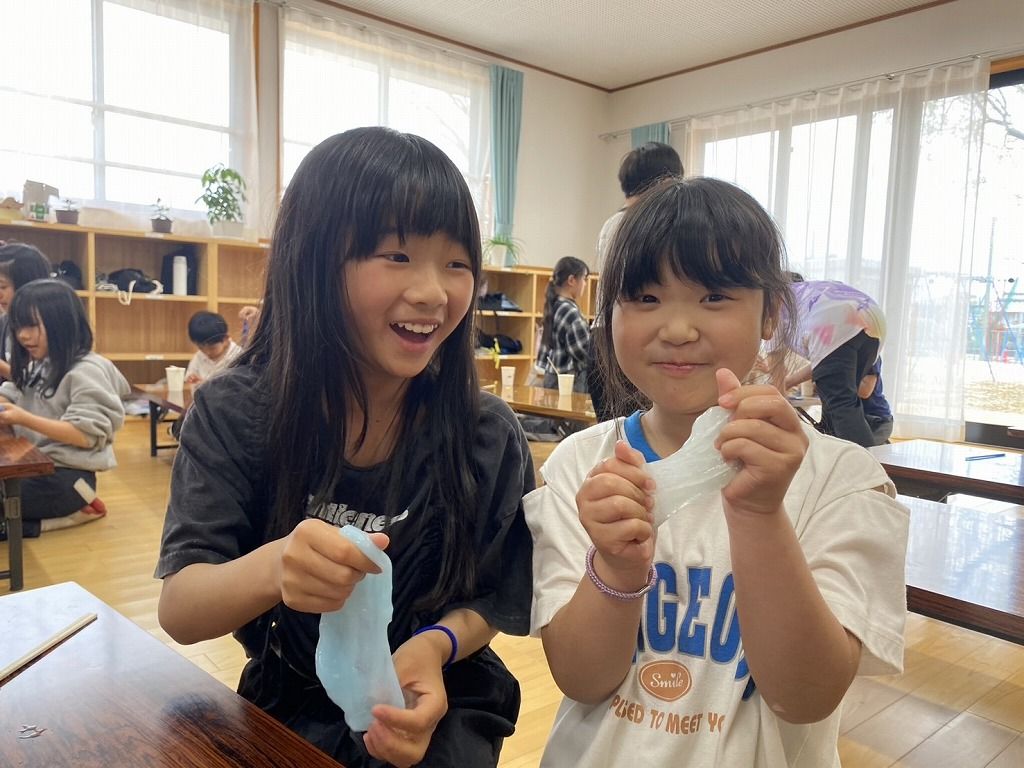 スライムやりたーーい!! の声で急遽スライムづくりをすることになりました。 お手伝いは、やりたーいの声を上げた5年生です。